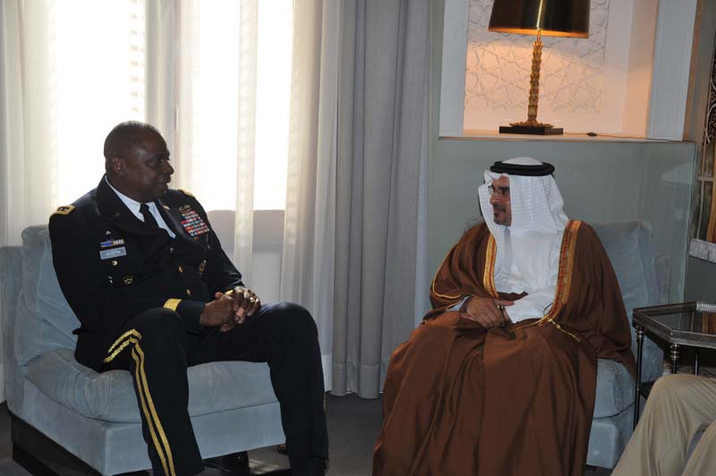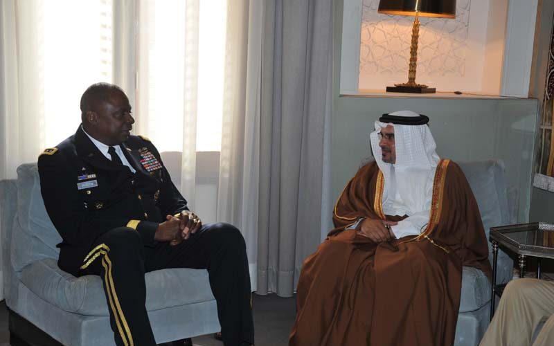 استقبل صاحب السمو الملكي الأمير سلمان بن حمد آل خليفة نائب جلالة الملك المفدى ولي العهد حفظه الله في قصر الرفاع اليوم ، الجنرال لويد أوستن القائد العام للقيادة المركزية الأمريكية والوفد المرافق بمناسبة زيارته للبلاد.