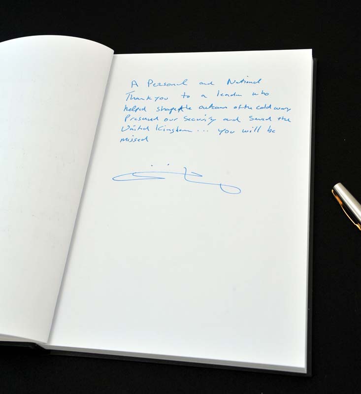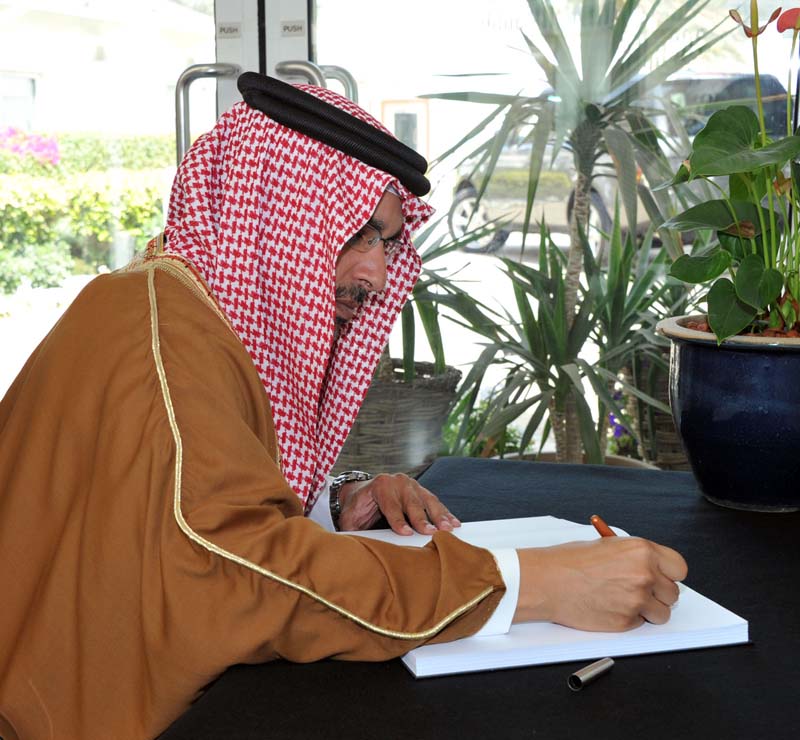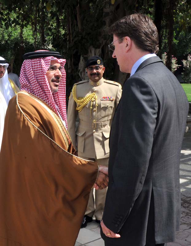 جاء ذلك خلال زيارة سموه لسفارة المملكة المتحدة في مملكة البحرين التي قدم سموه خلالها تعازيه للمملكة المتحدة ملكة وحكومة وشعباً بوفاة رئيسة وزراء بريطانيا الراحلة البارونة مارجريت تاتشر و كان في استقباله سعادة السيد ايان ليندسي السفير البريطاني في المملكة.