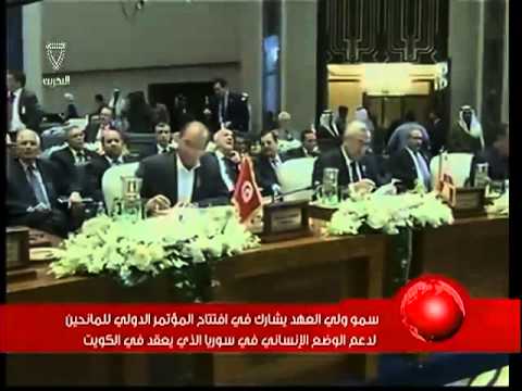 و حضر سموه حفظه الله ورعاه الجلسة الافتتاحية للمؤتمر المنعقد في قصر بيان و التي ترأسها صاحب السمو الشيخ صباح الأحمد الجابر الصباح أمير دولة الكويت الشقيقة ومعالي السيد بان كي مون الامين العام للأمم المتحدة وبحضور رؤساء الوفود المشاركة.و نقل سموه تحيات حضرة صاحب الجلالة الملك حمد بن عيسى آل خليفة عاهل البلاد المفدى حفظه الله ورعاه لأخيه صاحب السمو أمير دولة الكويت الشقيقة و للمشاركين في المؤتمر وتمنيات جلالته نجاح هذا المؤتمر الهام لدعم الأشقاء في سوريا. و تقدم سموه بالشكر لصاحب السمو الشيخ صباح الأحمد الجابر الصباح أمير دولة الكويت الشقيقة و لحكومة وشعباً على حسن الاستقبال وكرم الضيافة والإعداد المتميز لهذا المؤتمر الهام الذي يأتي منسجماً مع دور دولة الكويت الرائد والمتميز في العمل العربي والدولي.