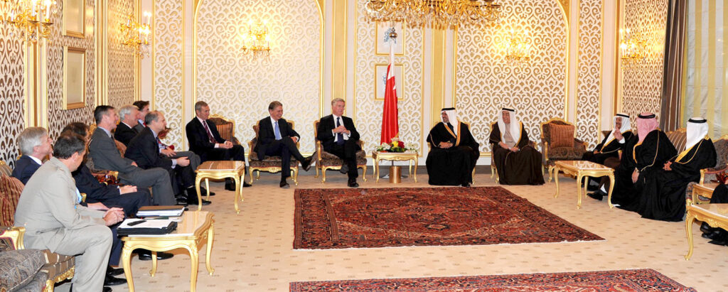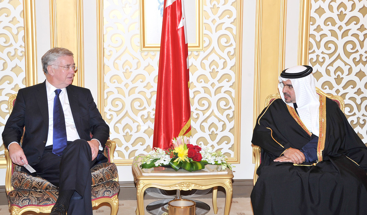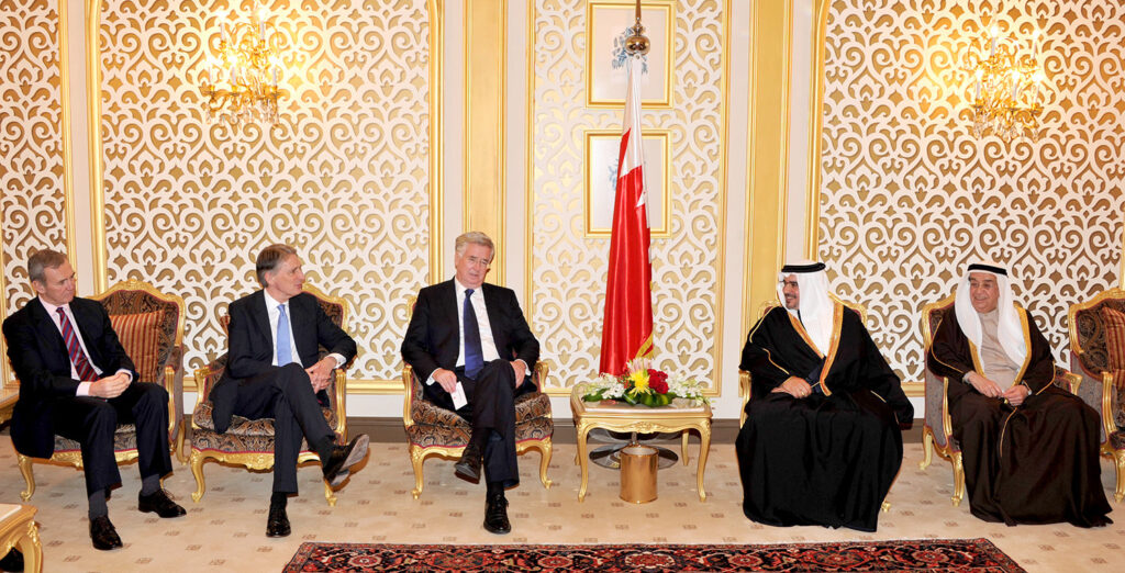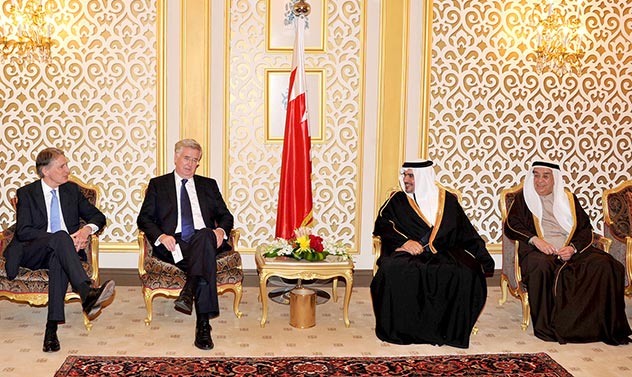 وأشاد سموه حفظه الله خلال لقائه اليوم بقصر الشيخ حمد بسعادة السيد فيليب هاموند وزير الخارجية بالمملكة المتحدة والسيد مايكل فالون وزير الدولة لشؤون الدفاع بالمملكة المتحدة والوفد البريطاني بمناسبة التوقيع على اتفاقية عسكرية بين حكومتي مملكة البحرين والمملكة المتحدة والمشاركة في منتدى حوار المنامة بالتنسيق العسكري والتعاون الدفاعي بين البلدين الصديقين ودعم المملكة المتحدة للتوجهات الإصلاحية في مملكة البحرين وترحيبها بمجريات العملية الانتخابية وما سارت علية من نزاهة وشفافية.