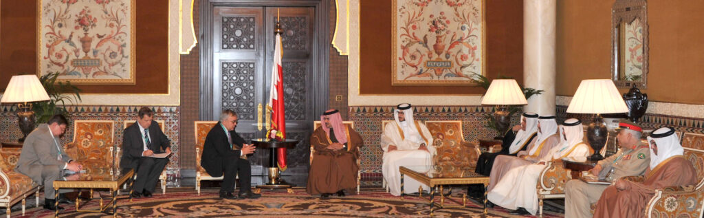 و لدى لقاء سموه بحضور نجله سمو الشيخ عيسى بن سلمان بن حمد آل خليفة مع سعادة السيد سيرغي فيرشانن المبعوث الروسي الخاص للسلام في الشرق الأوسط في إطار انعقاد أعمال منتدى حوار المنامة العاشر، شدد سموه على أهمية أن تركز الشراكة الدولية في جهودها لمحاربة الجماعات الثيوفاشية على تنسيق مسارات العمل السياسي و الاقتصادي من أجل هذا الهدف المحوري.