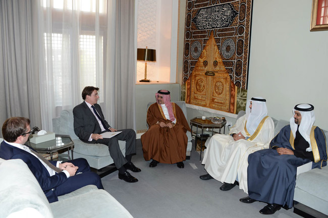 تسلم صاحب السمو الملكي الأمير سلمان بن حمد آل خليفة ولي العهد نائب القائد الأعلى النائب الأول لرئيس مجلس الوزراء رسالة موجهة إلى حضرة صاحب الجلالة حمد بن عيسى آل خليفة عاهل البلاد المفدى حفظه الله و رعاه من رئيس الوزراء في المملكة المتحدة السيد دايفيد كاميرون، قدمها سفير المملكة المتحدة لدى مملكة البحرين السيد إيان لينزي خلال استقبال سموه له في قصر الرفاع مساء اليوم.