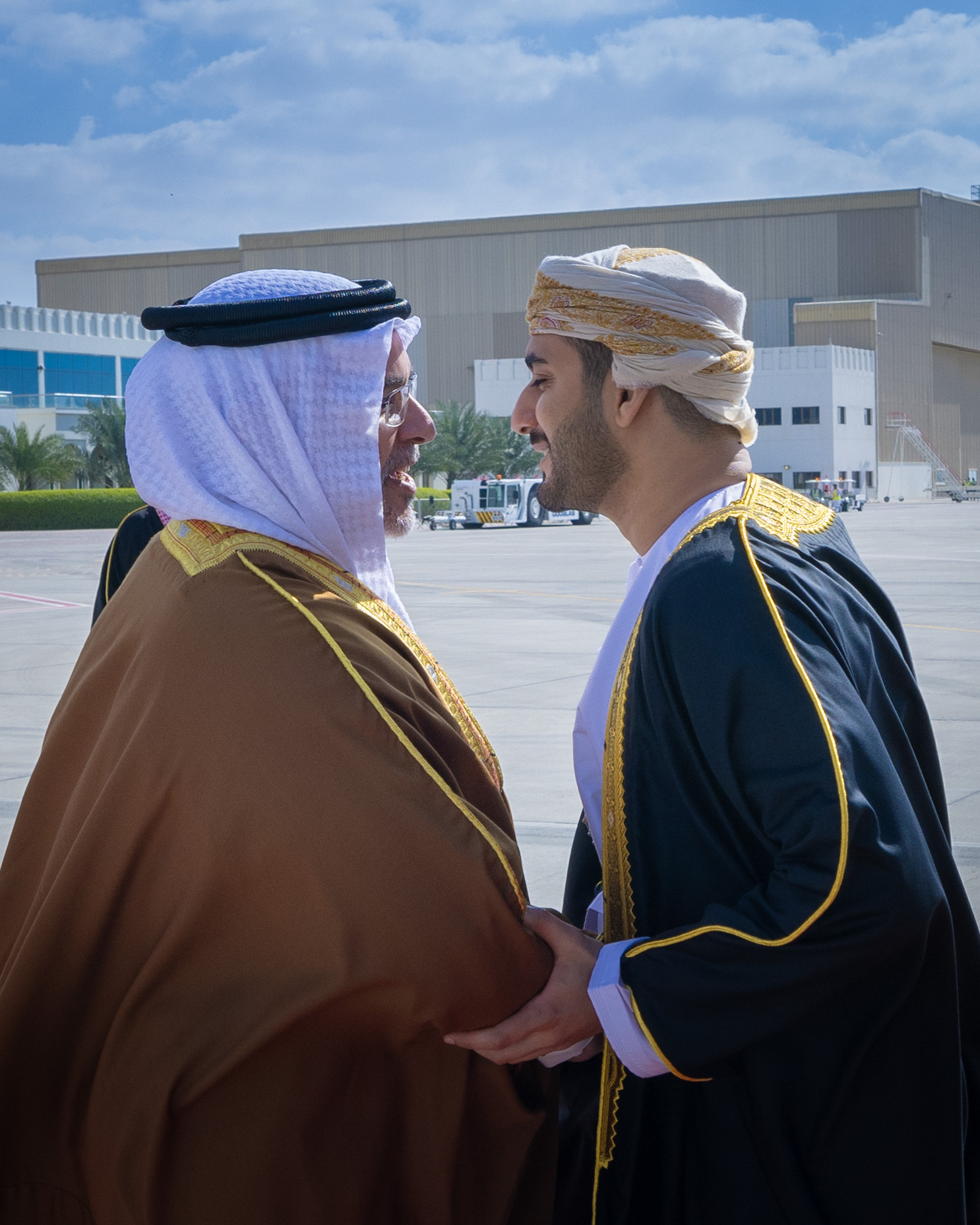 كان صاحب السمو الملكي الأمير سلمان بن حمد آل خليفة ولي العهد رئيس مجلس الوزراء حفظه الله في مقدمة مستقبلي أخيه صاحب السمو السيد ذي يزن بن هيثم بن طارق آل سعيد لدى وصوله إلى مملكة البحرين، في زيارة تهدف لبحث سبل تنمية وتعزيز العلاقات الأخوية التي تربط بين مملكة البحرين وسلطنة عمان الشقيقة، حيث رحب سموه بزيارته للبلاد، والتي تعكس الحرص المتبادل على تعزيز آفاق التعاون والتنسيق الثنائي بين البلدين.