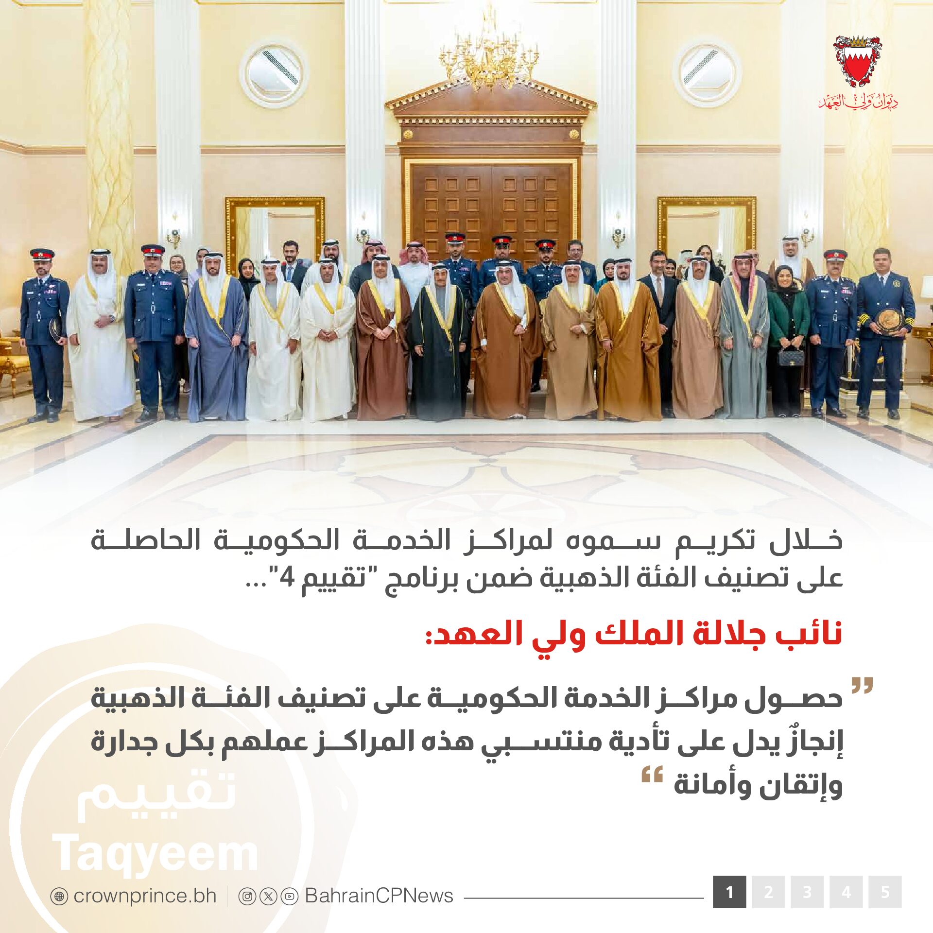 نائب جلالة الملك ولي العهد يكرم مراكز الخدمة الحكومية الحاصلة على تصنيف الفئة الذهبية ضمن برنامج “تقييم 4”