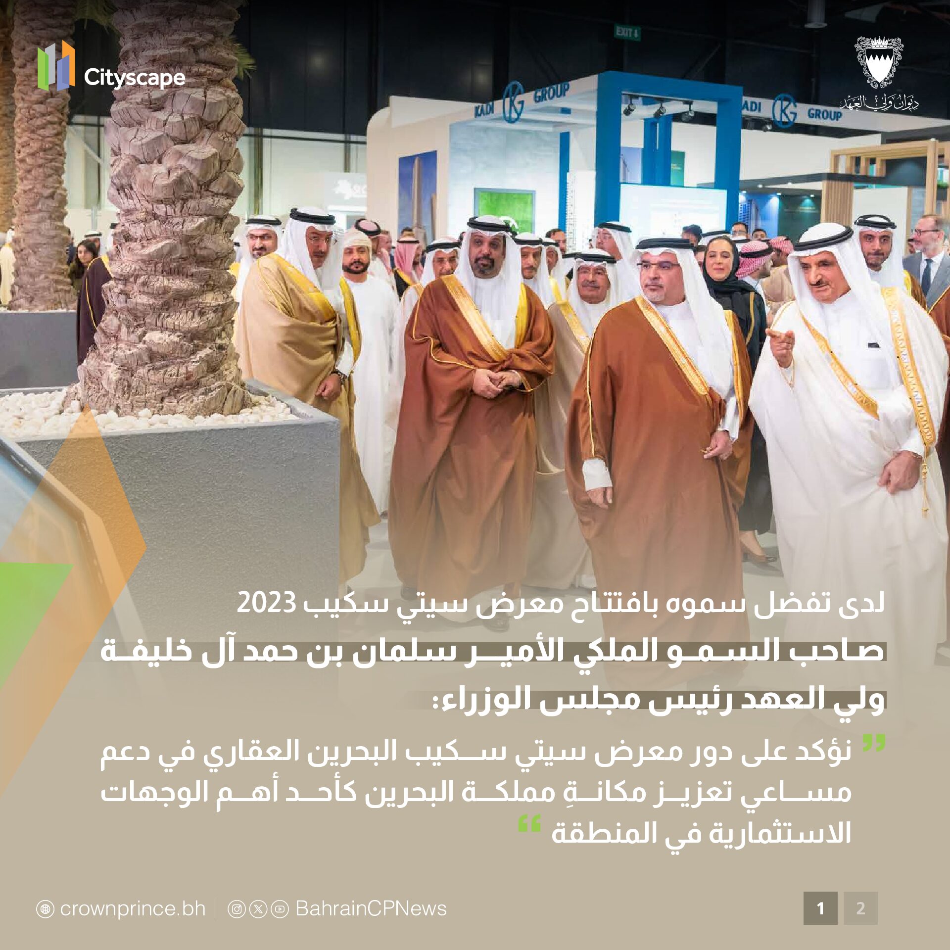جاء ذلك لدى تفضل صاحب السمو الملكي ولي العهد رئيس مجلس الوزراء حفظه الله بافتتاح معرض سيتي سكيب البحرين العقاري، بمركز البحرين العالمي للمعارض بمنطقة الصخير، يرافقه عدد من أصحاب السمو والمعالي والسعادة من كبار المسؤولين، حيث أكد سموه أن مملكة البحرين تواصل دفع عجلة التجديد والتطوير في كافة القطاعات بما يسهم في فتح آفاقٍ أوسع لتنويع قاعدة الاقتصاد الوطني، مشيرًا إلى أن القطاع العقاري في مملكة البحرين يشهد نمواً متصاعداً بفضل ما يستند إليه من منظومةٍ تنظيميةٍ وتشريعيةٍ متكاملة، والتسهيلات التي تقدمها المملكة والتي تسهم في فتح مجالاتٍ أوسع أمام الاستثمارات، لافتًا إلى ما اشتمل عليه معرض سيتي سكيب من فرص استثمارية واعدة في القطاع العقاري.