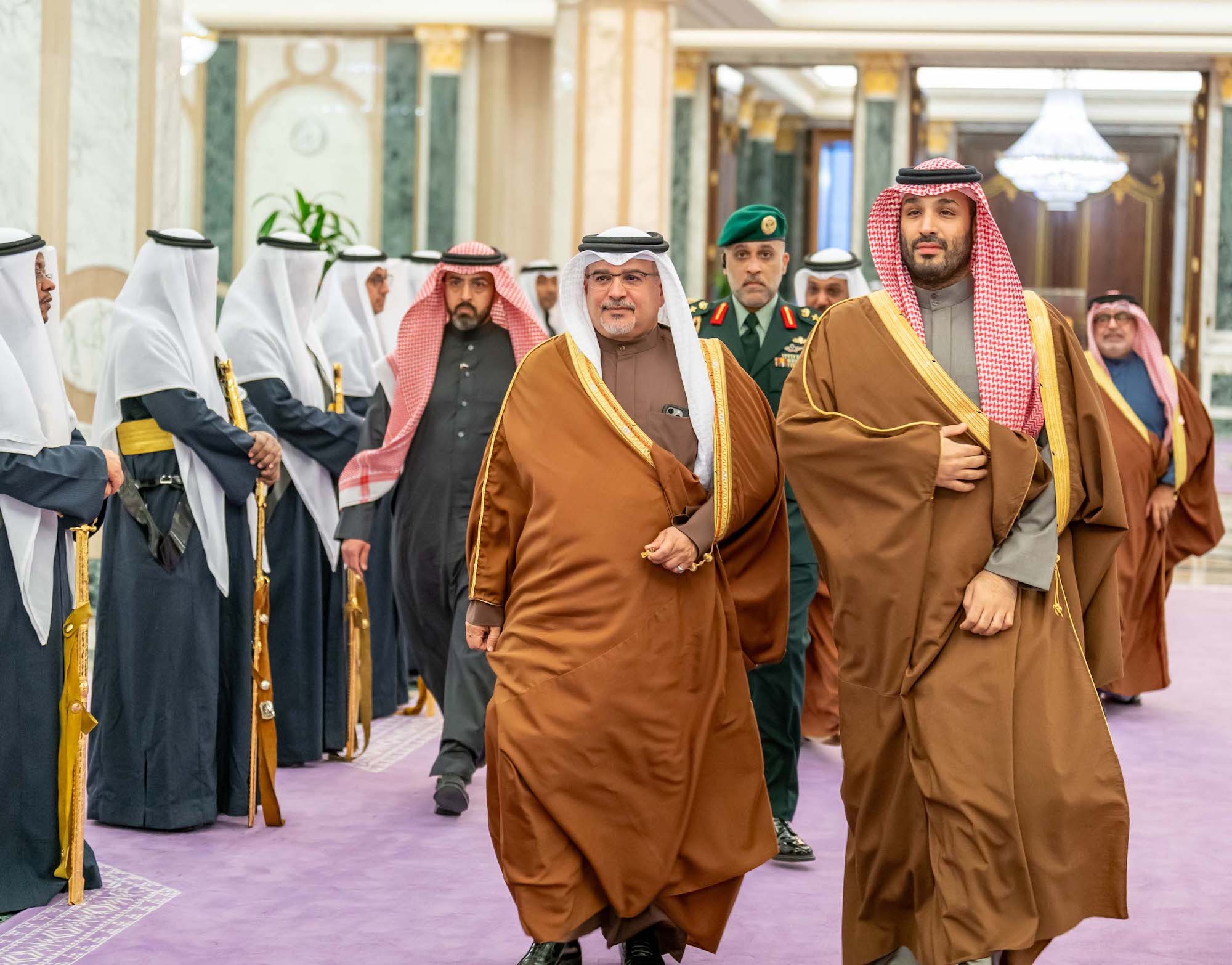 وإني لأجدها فرصة مواتية للتأكيد على متابعة مملكة البحرين لما تشهده المملكة العربية السعودية الشقيقة من نهضة وتقدم ورفعة على مختلف المستويات، والتي باتت قصص نجاح تنموية ملهمة عززت من مكانتها الريادية إقليماً ودولياً، متمنياً للمملكة العربية السعودية بالمزيد من التقدم والازدهار ودوام الأمن والنماء.