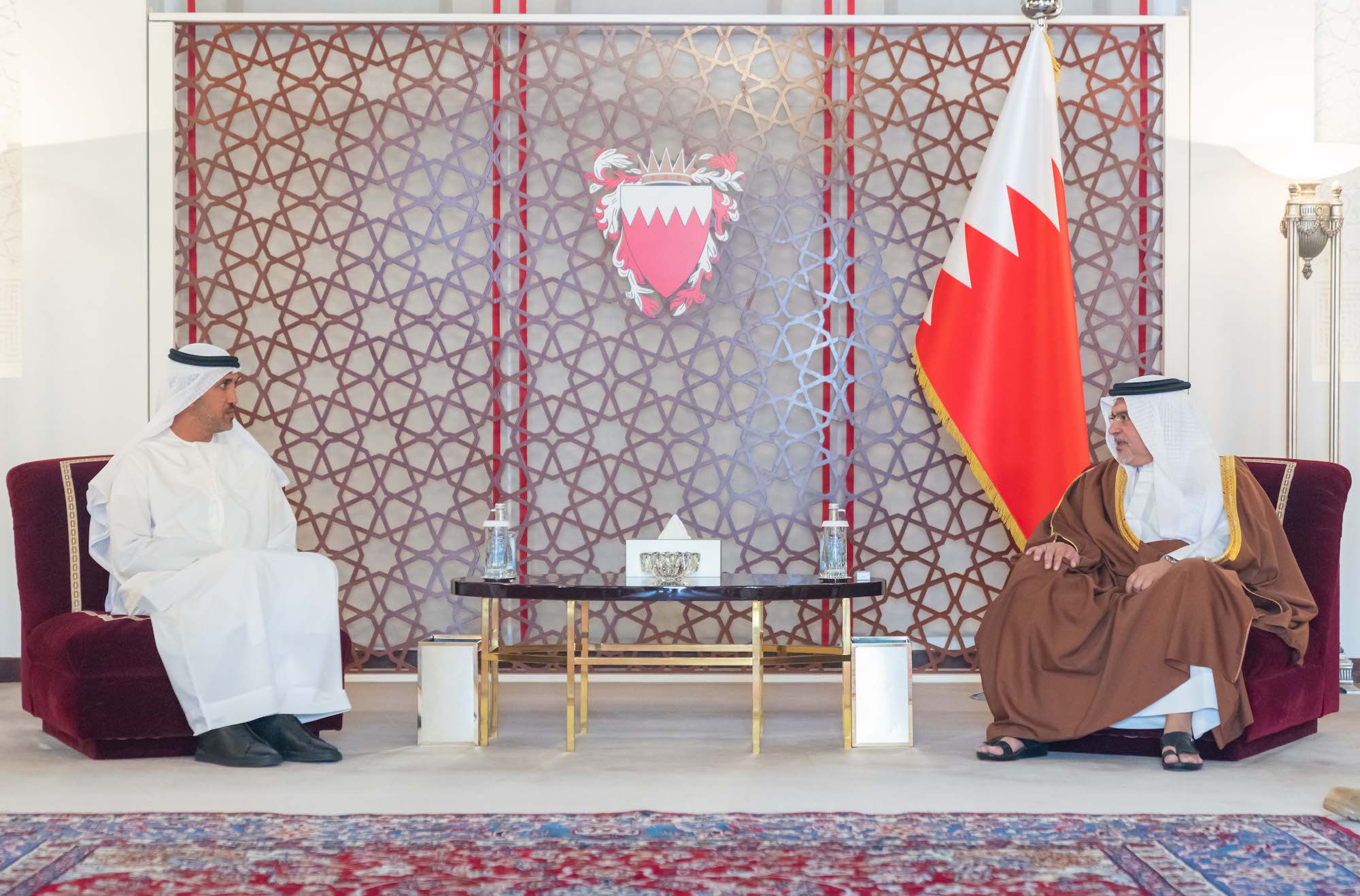 جاء ذلك لدى لقاء سموه حفظه الله في قصر الرفاع اليوم، بحضور سمو الفريق الركن الشيخ ناصر بن حمد آل خليفة مستشار الأمن الوطني قائد الحرس الملكي، وسمو العقيد الركن الشيخ خالد بن حمد آل خليفة قائد قوة الحرس الملكي الخاصة، وسمو الشيخ عيسى بن سلمان بن حمد آل خليفة رئيس مجلس أمناء وقف عيسى بن سلمان التعليمي الخيري رئيس مجلس إدارة صندوق العمل، وسمو الشيخ محمد بن سلمان بن حمد آل خليفة، ومعالي الشيخ سلمان بن خليفة آل خليفة وزير المالية والاقتصاد الوطني، وسعادة الفريق الركن عبدالله بن حسن النعيمي وزير شؤون الدفاع، معالي السيد محمد بن مبارك المزروعي وزير الدولة لشؤون الدفاع عضو مجلس الوزراء بدولة الإمارات العربية المتحدة الشقيقة، حيث نقل معاليه تحيات صاحب السمو الشيخ محمد بن زايد آل نهيان رئيس دولة الإمارات العربية المتحدة القائد الأعلى للقوات المسلحة، وصاحب السمو الشيخ محمد بن راشد آل مكتوم نائب رئيس دولة الإمارات العربية المتحدة رئيس مجلس الوزراء حاكم دبي وزير الدفاع، إلى حضرة صاحب الجلالة ملك البلاد المعظم القائد الأعلى للقوات المسلحة حفظه الله ورعاه وصاحب السمو الملكي ولي العهد نائب القائد الأعلى للقوات المسلحة رئيس مجلس الوزراء، كما نقل تعازيهما إلى جلالته وسموه في شهيد الواجب الرائد عبدالله راشد النعيمي الذي استشهد أثناء قيامه بواجبه الوطني إثر تعرضه لعمل إرهابي مع عدد من منتسبي القوات المسلحة لدولة الإمارات العربية المتحدة أثناء أدائهم مهامًا تدريبية مع القوات المسلحة الإماراتية في جمهورية الصومال.