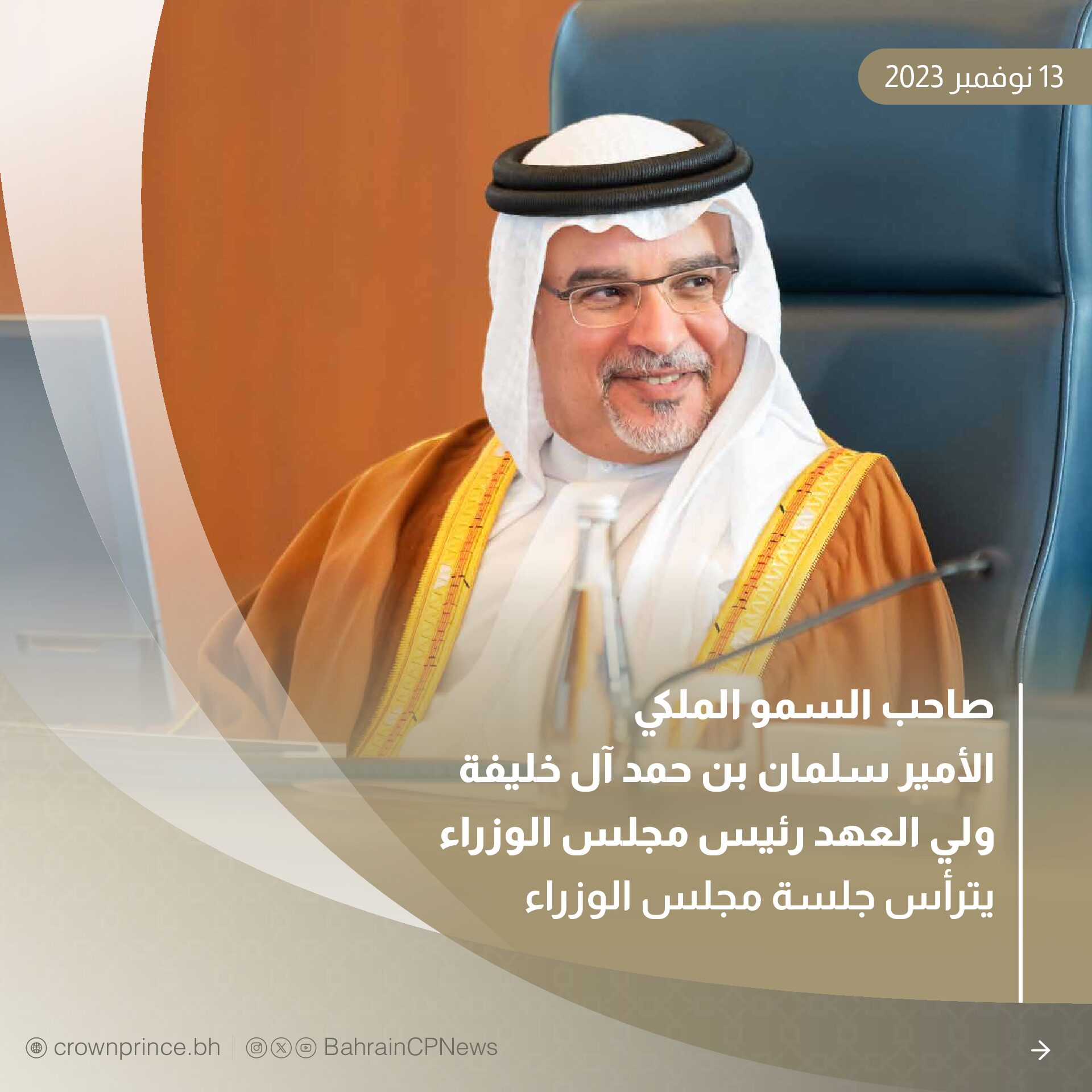 ترأس صاحب السمو الملكي الأمير سلمان بن حمد آل خليفة ولي العهد رئيس مجلس الوزراء، الاجتماع الاعتيادي الأسبوعي لمجلس الوزراء الذي عقد اليوم، بقصر القضيبية.