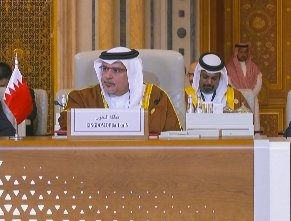 ونيابة عن حضرة صاحب الجلالة ملك البلاد المعظم حفظه الله ورعاه وجه صاحب السمو الملكي ولي العهد رئيس مجلس الوزراء كلمةً للقمة العربية الإسلامية المشتركة غير العادية بشكل استثنائي هذا نصها:-