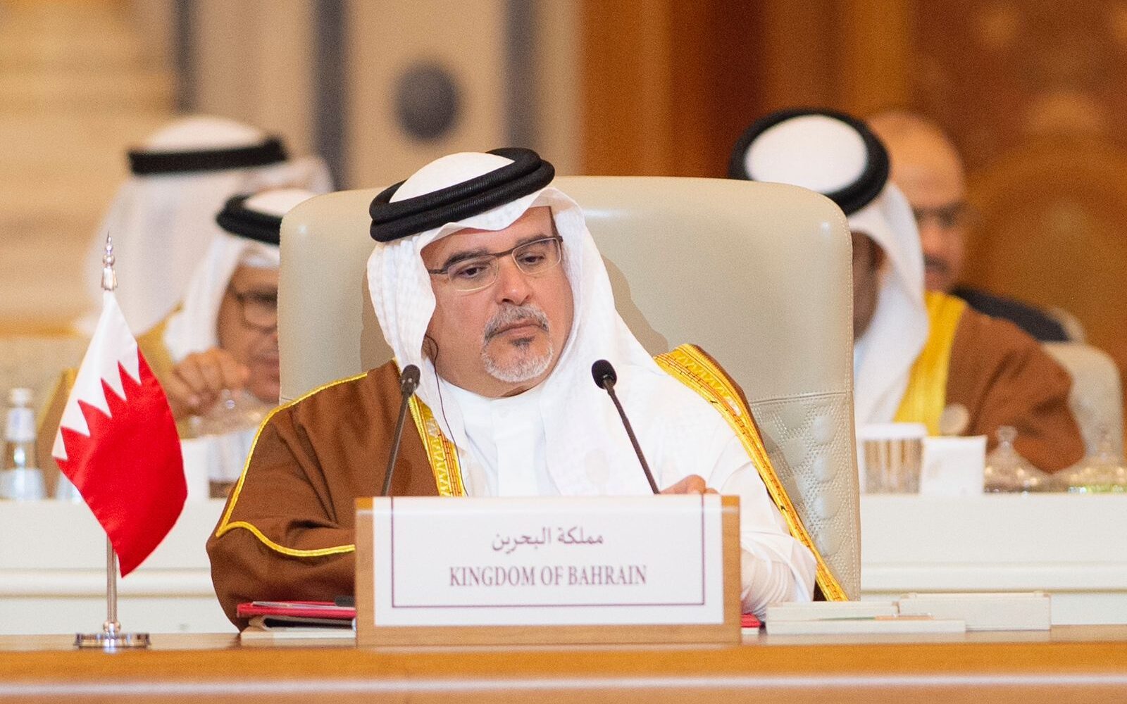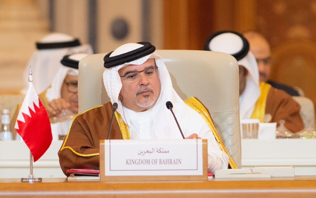 نيابةً عن حضرة صاحب الجلالة الملك حمد بن عيسى آل خليفة ملك البلاد المعظم حفظه الله ورعاه، شارك صاحب السمو الملكي الأمير سلمان بن حمد آل خليفة ولي العهد رئيس مجلس الوزراء مع أصحاب الجلالة والفخامة والسمو قادة الدول الخليجية والعربية والإسلامية الشقيقة والصديقة وأولياء العهود، ورؤساء الحكومات، ورؤساء الوفود، في القمة العربية الإسلامية المشتركة غير العادية بشكل استثنائي المنعقدة في مدينة الرياض بالمملكة العربية السعودية الشقيقة، وذلك تلبيةً لدعوةٍ كريمة تلقاها جلالة الملك المعظم من أخيه خادم الحرمين الشريفين الملك سلمان بن عبدالعزيز آل سعود ملك المملكة العربية السعودية حفظهما الله لبحث آخر مستجدات وتطورات الأوضاع في قطاع غزة، والتي عقدت اليوم برئاسة صاحب السمو الملكي الأمير محمد بن سلمان بن عبدالعزيز آل سعود ولي العهد رئيس مجلس الوزراء بالمملكة العربية السعودية الشقيقة.