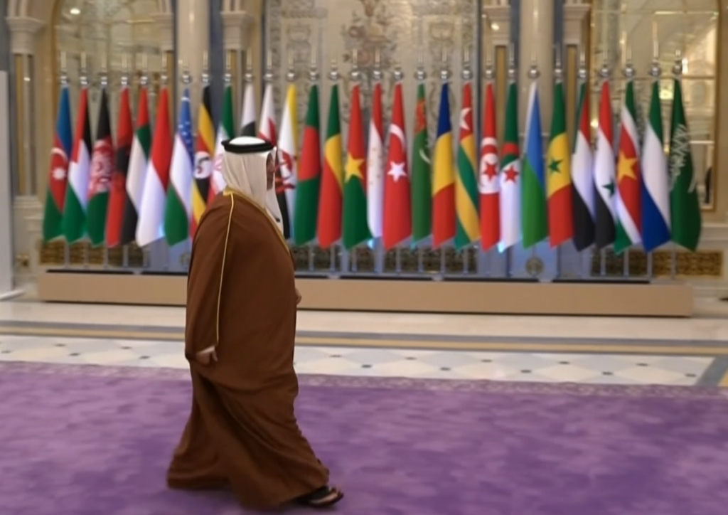 نلتقي اليوم في هذه القمة المشتركة التاريخية التي تجمع بين دول جامعة الدول العربية ومنظمة التعاون الاسلامي، مؤكدين وقوفنا مع الشعب الفلسطيني الشقيق أمام ما يعانيه من أوضاع كارثية تفوق القدرة الإنسانية على التحمل، وذلك في ظل استمرار الحرب الدائرة على قطاع غزة، وبتصعيدٍ يتجاهل القرارات والمواثيق الدولية، ويهدد جهود تحقيق السلام العادل والشامل كخيار لا بديل عنه للمنطقة ومستقبلها ولصالح أبنائها في الحاضر والمستقبل.