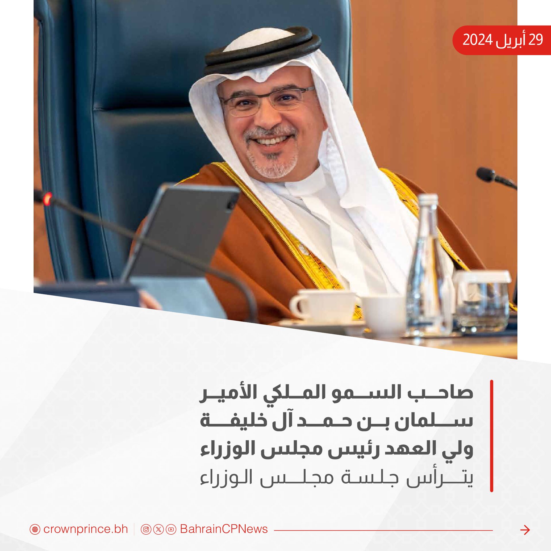 ترأس صاحب السمو الملكي الأمير سلمان بن حمد آل خليفة ولي العهد رئيس مجلس الوزراء، الاجتماع الاعتيادي الأسبوعي لمجلس الوزراء الذي عقد اليوم، بقصر القضيبية.