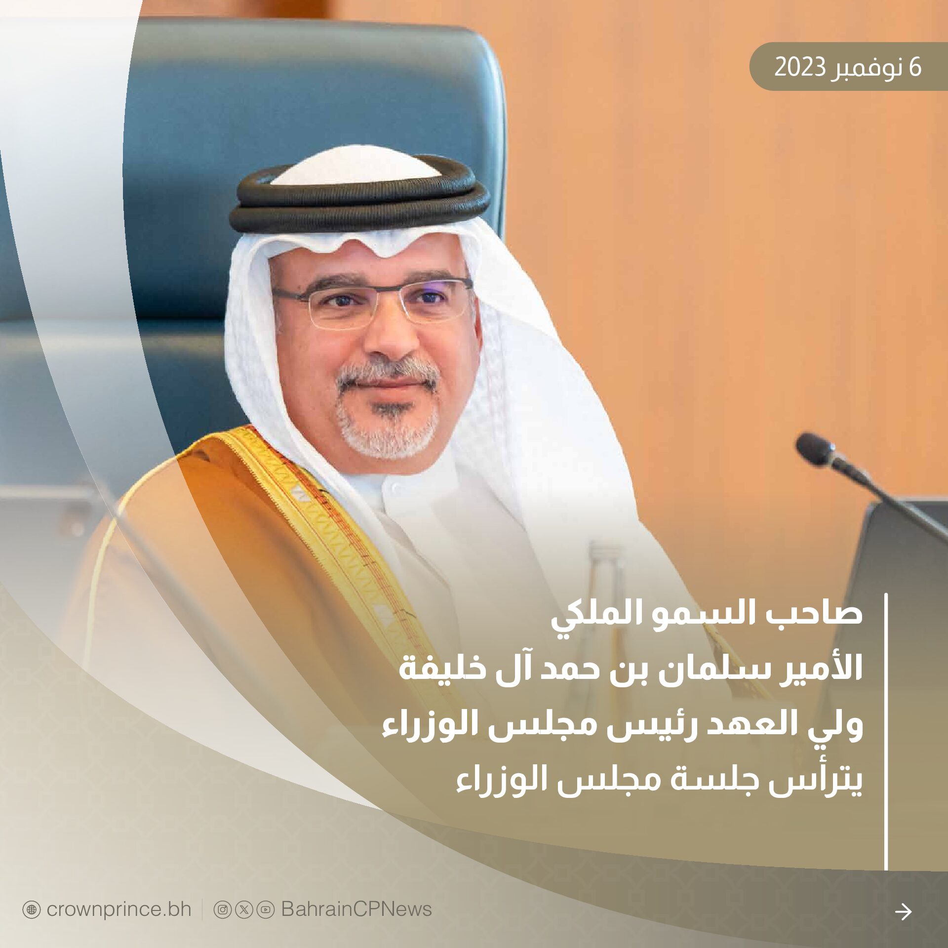 ترأس صاحب السمو الملكي الأمير سلمان بن حمد آل خليفة ولي العهد رئيس مجلس الوزراء، الاجتماع الاعتيادي الأسبوعي لمجلس الوزراء الذي عقد اليوم، بقصر القضيبية.