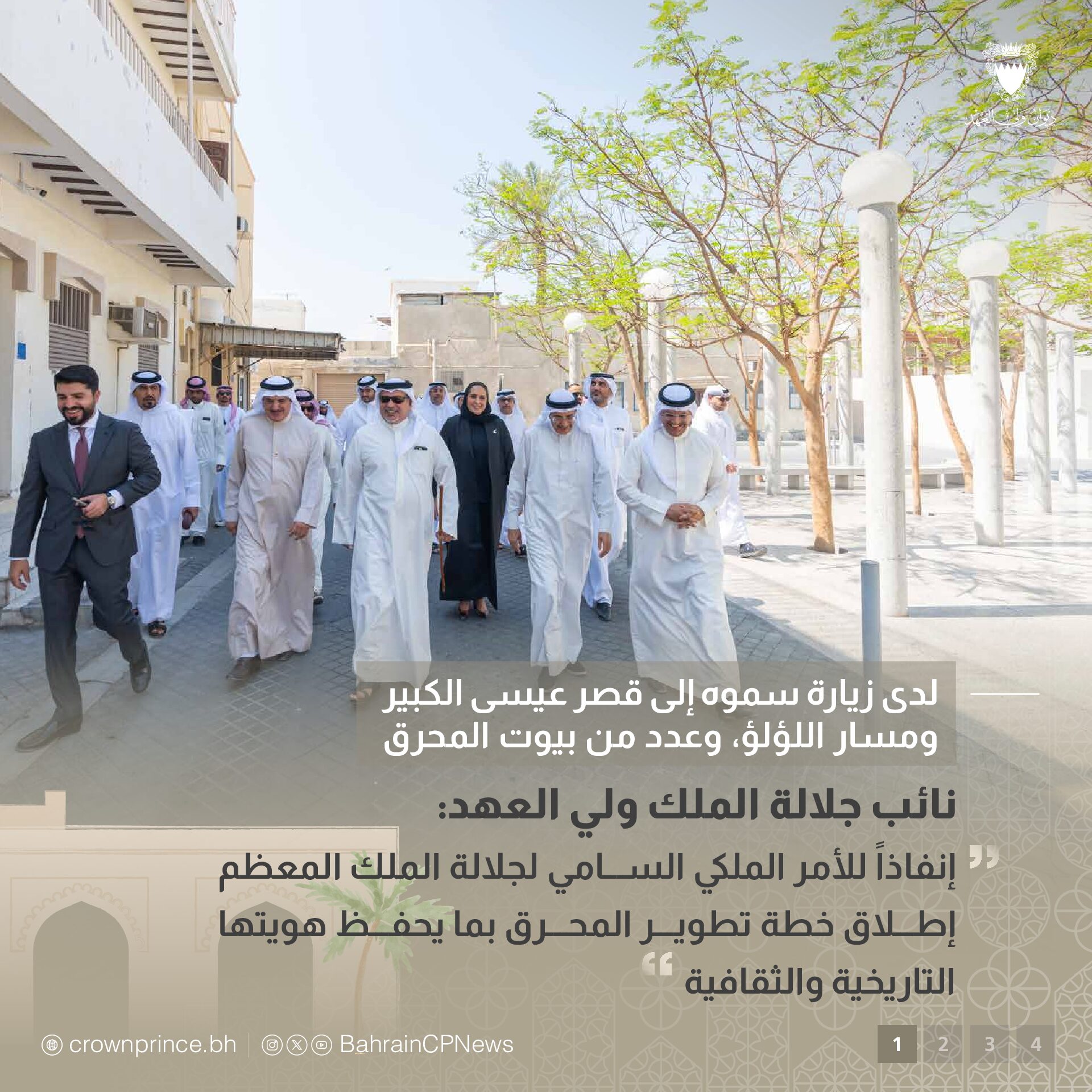 نائب جلالة الملك ولي العهد: إنفاذاً للأمر الملكي السامي لجلالة الملك المعظم إطلاق خطة تطوير المحرق بما يحفظ هويتها التاريخية والثقافية