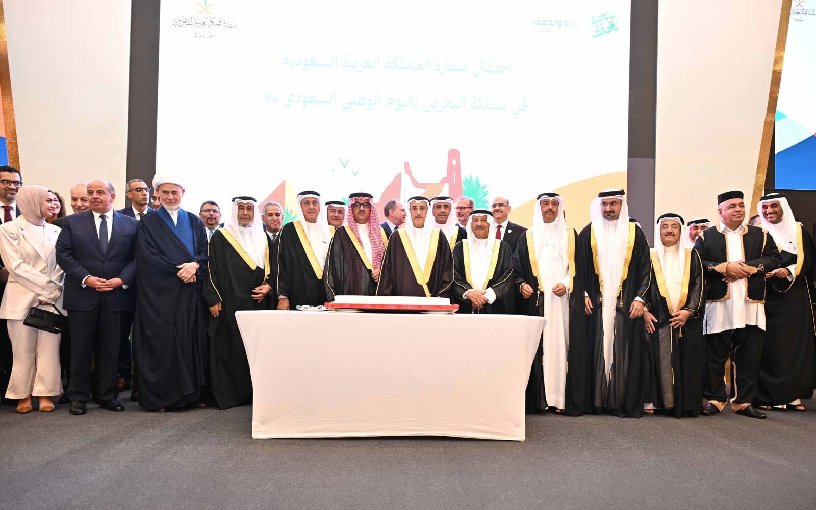 أناب صاحب السمو الملكي الأمير سلمان بن حمد آل خليفة، ولي العهد رئيس مجلس الوزراء حفظه الله، معالي الشيخ خالد بن عبد الله آل خليفة، نائب رئيس مجلس الوزراء، لحضور حفل الاستقبال الذي نظمته سفارة المملكة العربية السعودية لدى مملكة البحرين مساء اليوم (الأربعاء – 25 سبتمبر 2024)، وذلك بمناسبة اليوم الوطني السعودي الرابع والتسعين.