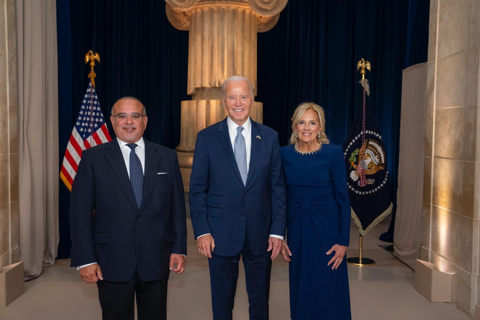 جاء ذلك لدى حضور سموه، حفظه الله اليوم، في إطار ترؤس سموه نيابةً عن حضرة صاحب الجلالة ملك البلاد المعظم حفظه الله ورعاه لوفد مملكة البحرين إلى اجتماعات الجمعية العامة للأمم المتحدة بدورتها التاسعة والسبعين المنعقدة بمقر الأمم المتحدة في مدينة نيويورك، حفل الاستقبال الذي أقامه فخامة الرئيس جو بايدن رئيس الولايات المتحدة الأمريكية لرؤساء الوفود المشاركة في اجتماعات الجمعية العامة للأمم المتحدة، حيث نقل سموه تحيات حضرة صاحب الجلالة ملك البلاد المعظم حفظه الله ورعاه إلى فخامة رئيس الولايات المتحدة الأمريكية، لافتاً سموه إلى ما يجمع مملكة البحرين والولايات المتحدة الأمريكية من تاريخٍ ممتد من التعاون الوثيق وشراكة استراتيجية عززتها الاتفاقيات ومذكرات التفاهم المشتركة والتي كان آخرها الاتفاقية الشاملة للتكامل الأمني والازدهار، والتي انعكست إيجابًا على خلق المزيد من الفرص النوعية وتعزيز مختلف مسارات النمو الاقتصادي.