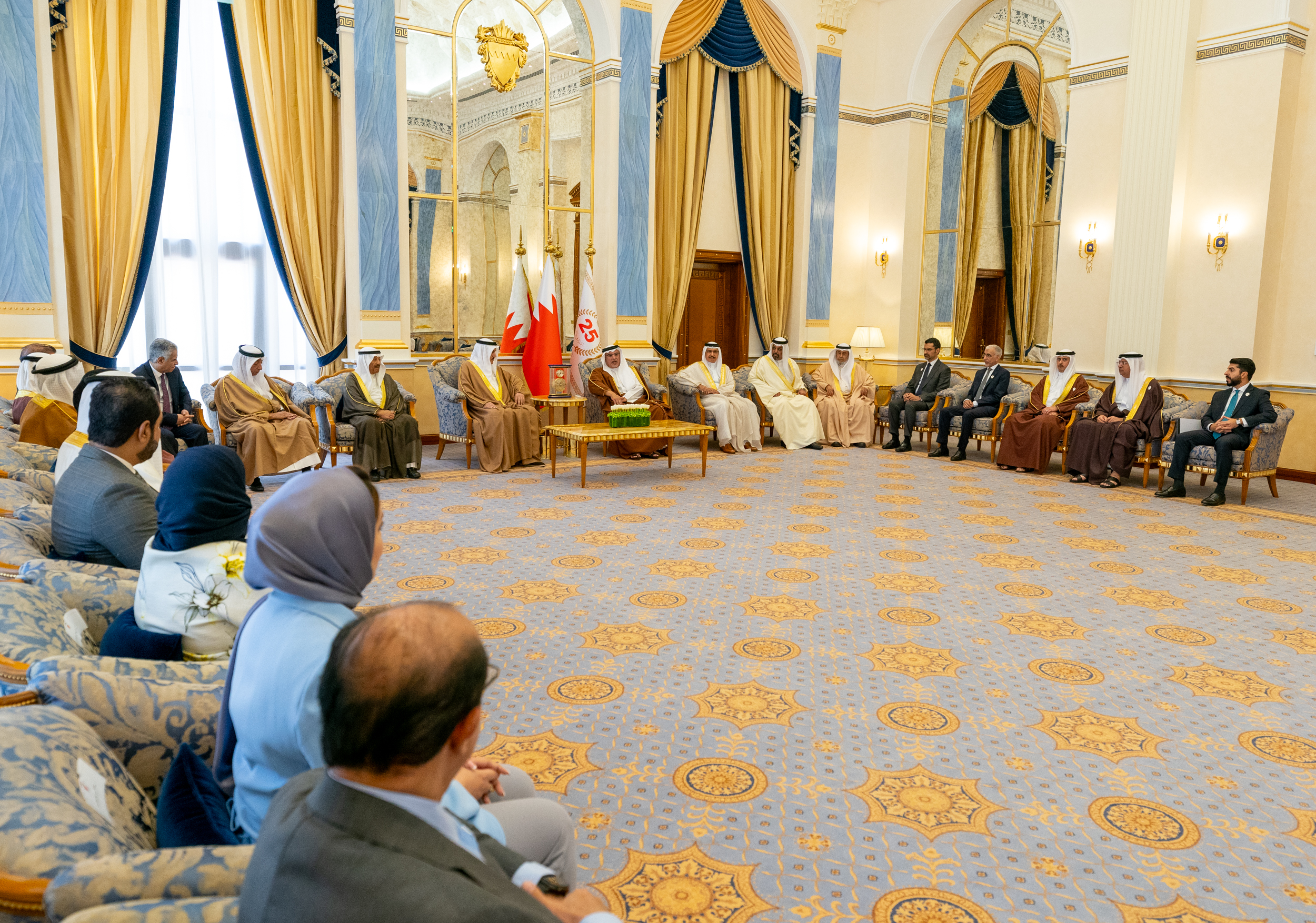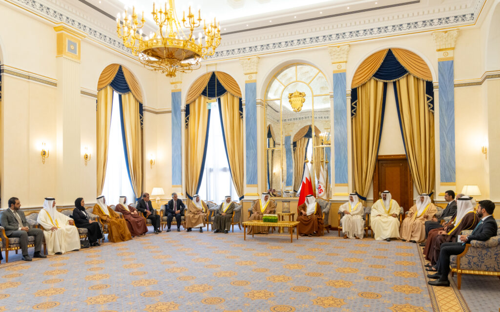 سمو ولي العهد رئيس مجلس الوزراء يلتقي معالي رئيس مجلس النواب ومعالي رئيس مجلس الشورى وعدد من أعضاء مجلسي الشورى والنواب بحضور سعادة رئيس غرفة تجارة وصناعة البحرين