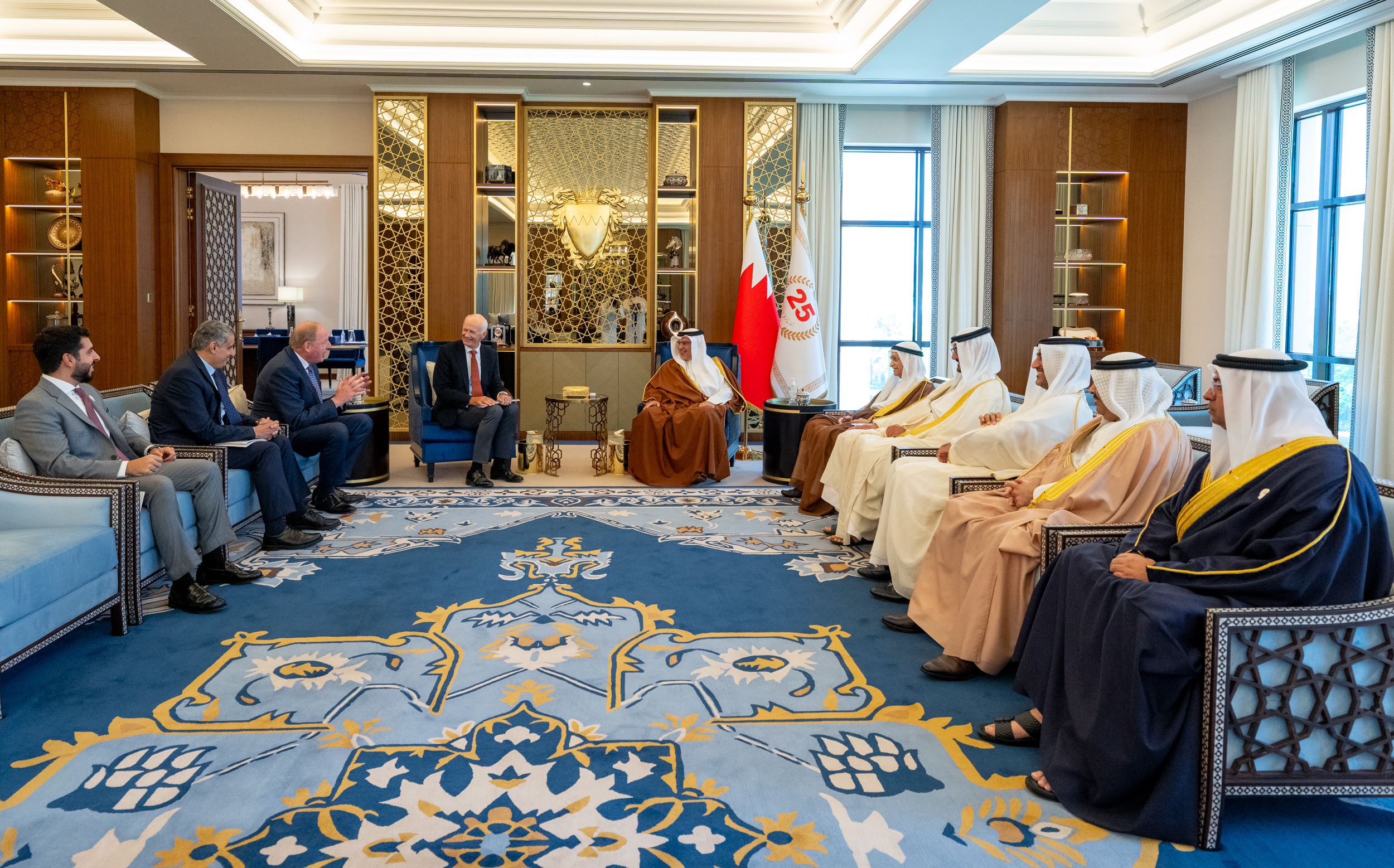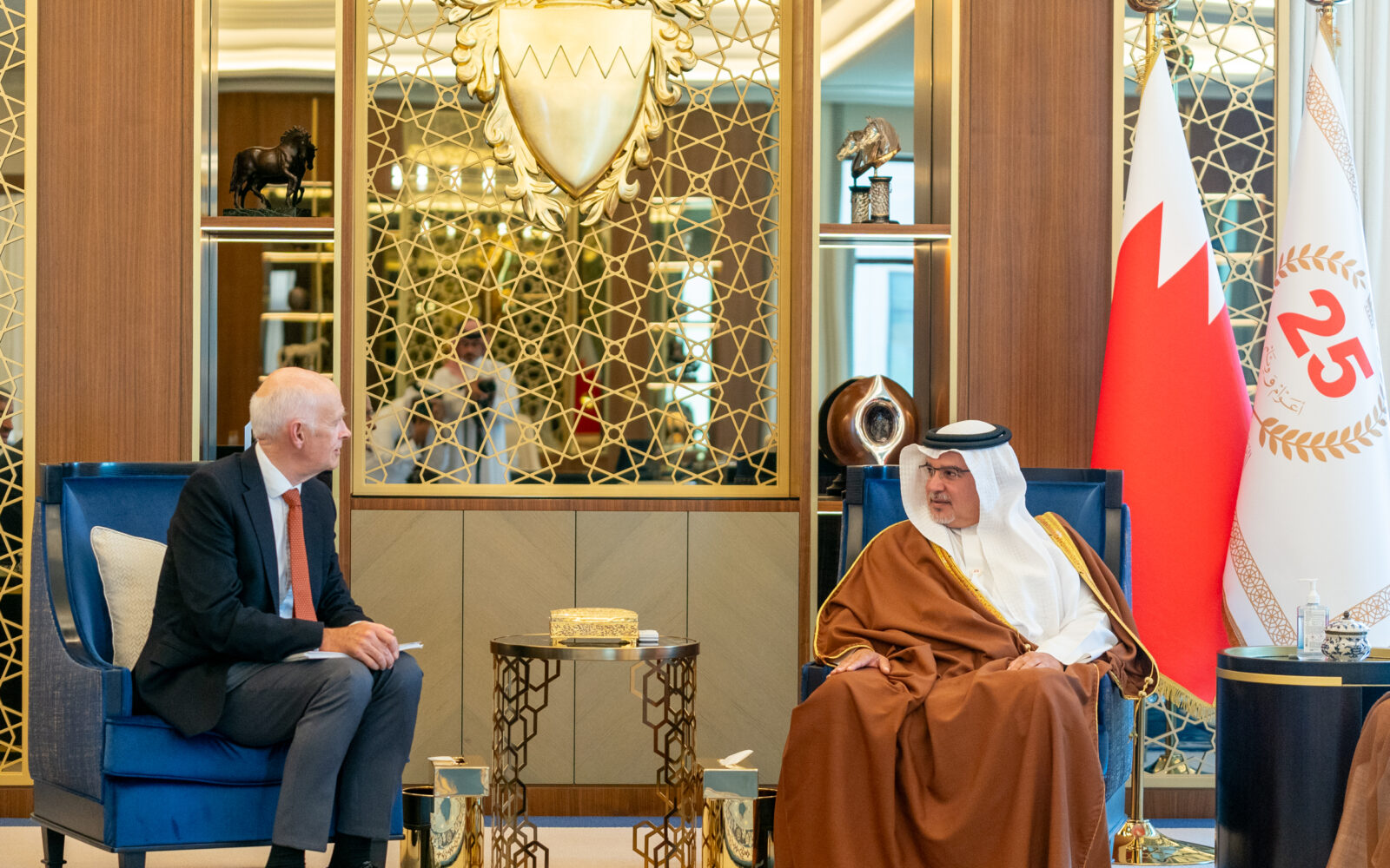 جاء ذلك لدى لقاء سموه حفظه الله بقصر القضيبية اليوم، بحضور سمو الشيخ عيسى بن سلمان بن حمد آل خليفة رئيس مجلس أمناء وقف عيسى بن سلمان التعليمي الخيري رئيس مجلس إدارة صندوق العمل، ومعالي الفريق طبيب الشيخ محمد بن عبدالله آل خليفة رئيس المجلس الأعلى للصحة، وعدداً من أصحاب السعادة من كبار المسؤولين، البروفيسور كاثال كيلي نائب رئيس الجامعة والرئيس التنفيذي للكلية الملكية للجراحين في إيرلندا – دبلن، حيث أشار سموه إلى دور الكلية الملكية للجراحين – جامعة البحرين الطبية في تعزيز مخرجات التعليم العالي بالحقل الطبي طوال 20 عاماً والتي أسهمت في رفد القطاع الصحي بالخبرات والكوادر الطبية المؤهلة بما يسهم في تلبية احتياجات القطاع الصحي، معرباً سموه عن تمنياته للكلية مواصلة تحقيق النجاحات التي ينعكس أثرها على تطور المسيرة التعليمية والعملية بالمجال الطبي ويسهم في ازدهار ونماء القطاع الصحي بالمملكة.