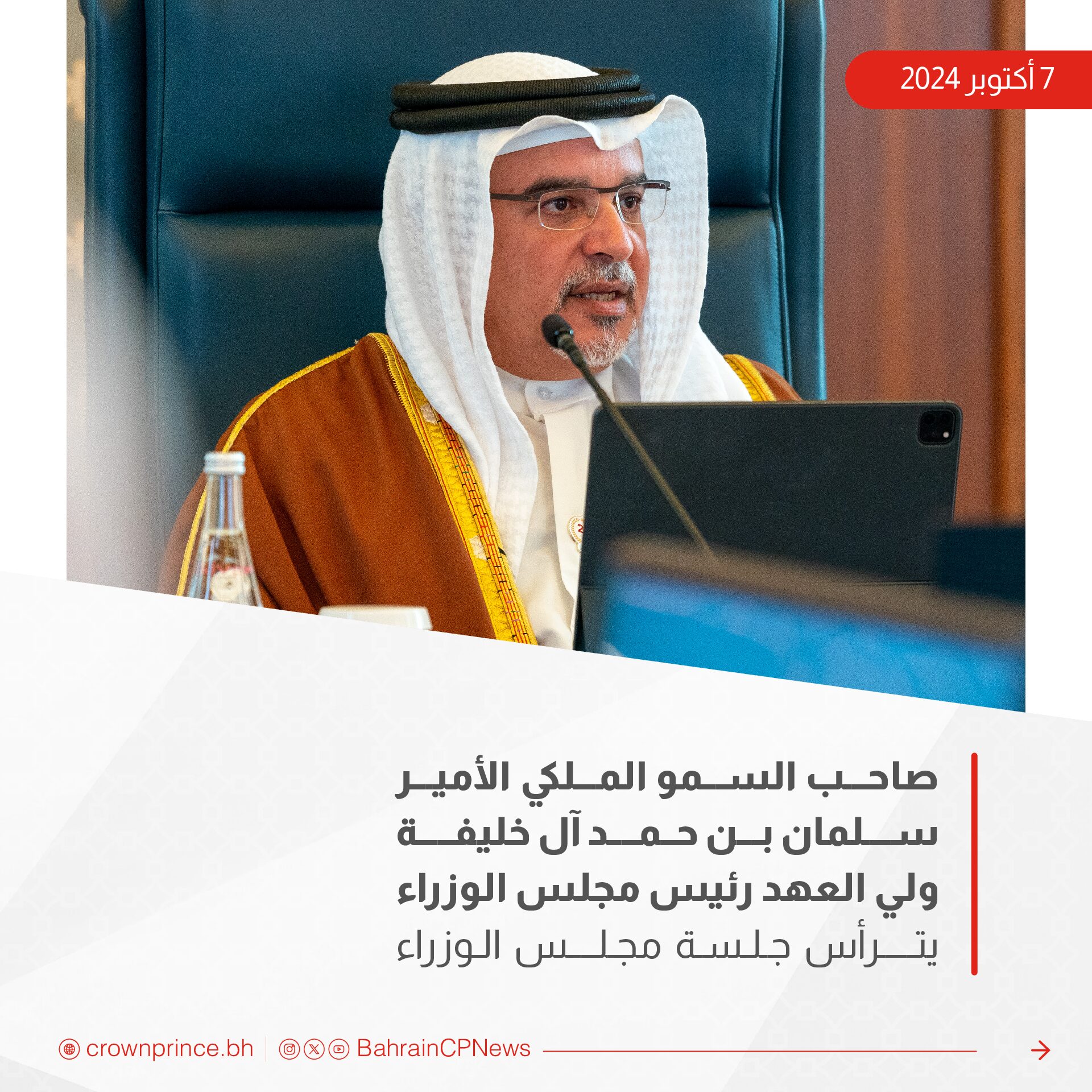 ترأس صاحب السمو الملكي الأمير سلمان بن حمد آل خليفة ولي العهد رئيس مجلس الوزراء، الاجتماع الاعتيادي الأسبوعي لمجلس الوزراء الذي عقد اليوم، بقصر القضيبية.