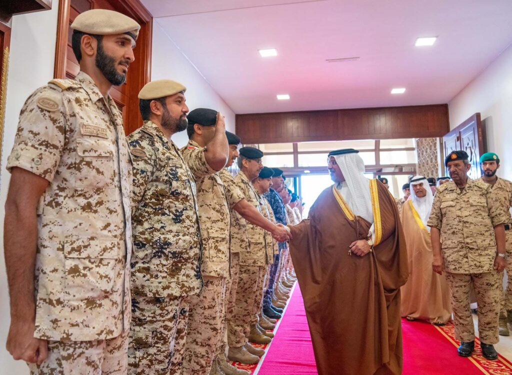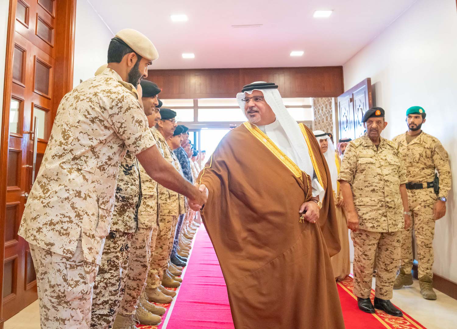 ونوّه سموه خلال الزيارة بما يبذله كافة منتسبي قوة دفاع البحرين من جهودٍ وطنية بارزة تُسطر في سجل التاريخ نموذجًا مشّرفًا يعكس أروع معاني العطاء والتضحية والشجاعة والإقدام إعلاءً لراية الحق داخل الوطن وخارجه، مشيرًا إلى أن التضحيات الغالية والنفيسة لشهداء البحرين من رجال قوة دفاع البحرين في مختلف الميادين ستبقى خالدة في ذاكرة الجميع على مر الزمن، مؤكدًا أن ما يتسم به أبناء الوطن من منتسبي قوة دفاع البحرين ضمن فريق البحرين من عزيمة وثابة وروحٍ متجددة على طريق الحق نبراسٌ لشحذ الهمم عاليًا في سبيل الوطن لتبقى البحرين دائمًا وأبدًا عالية الشأن محفوظةً في قلوب الجميع.