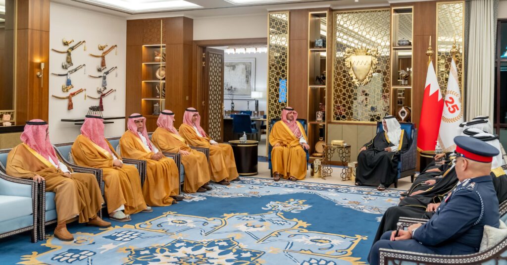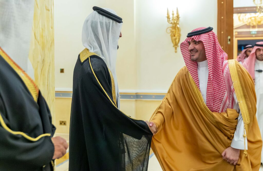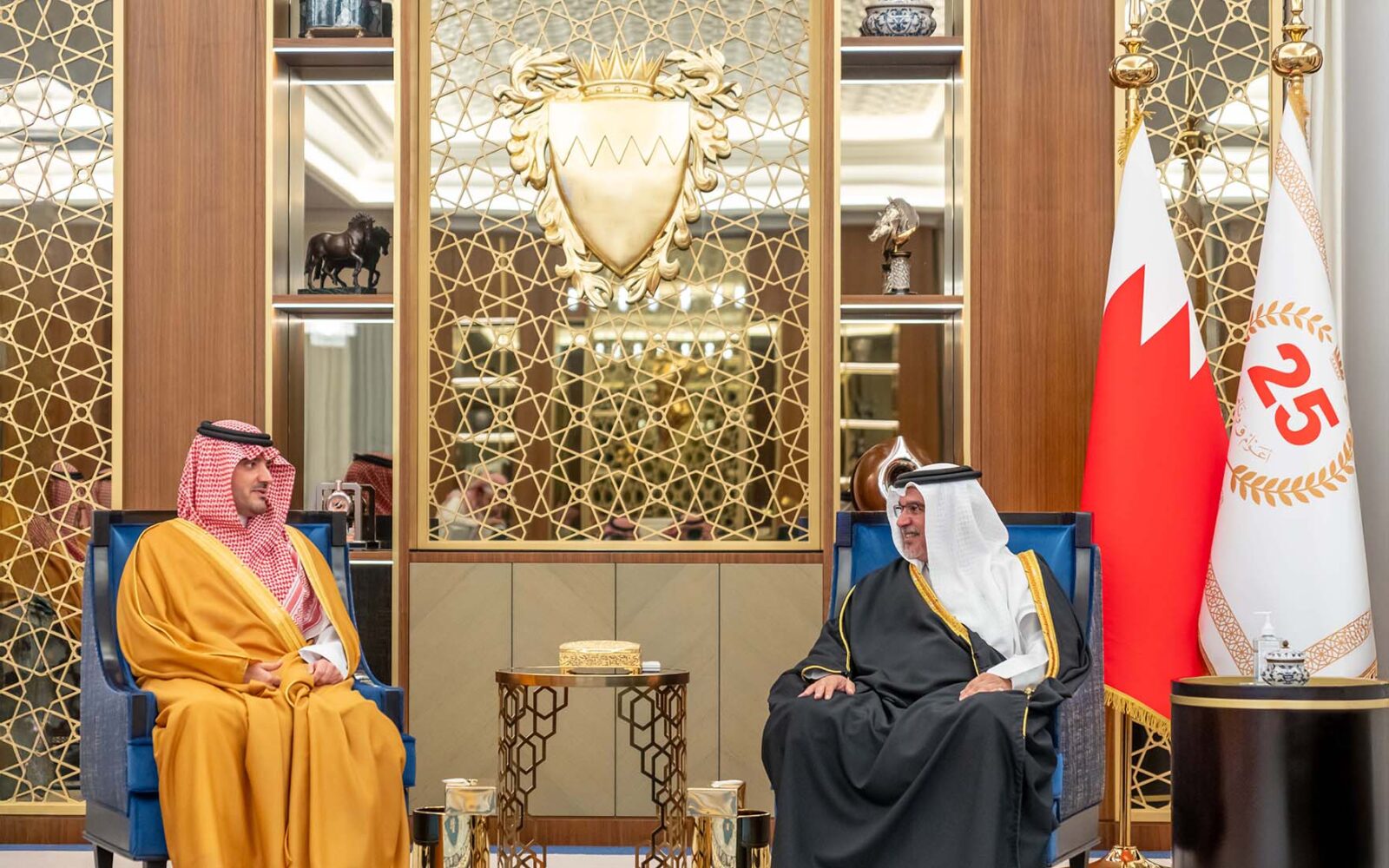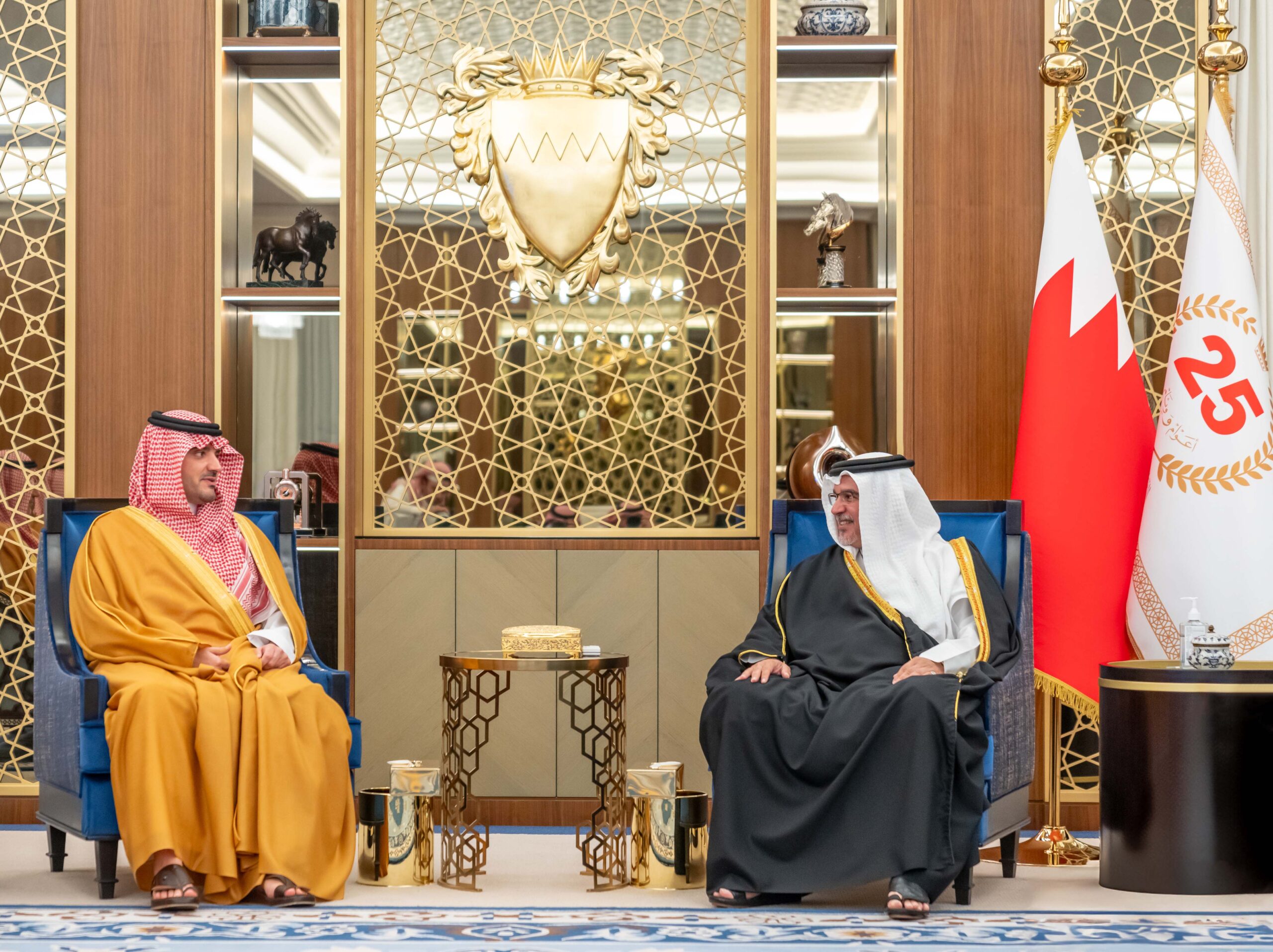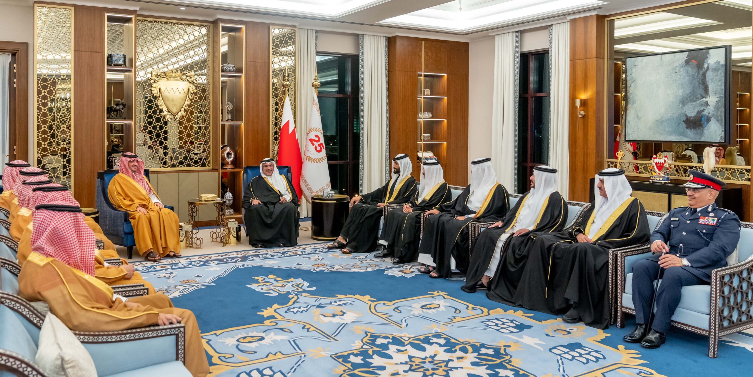 جاء ذلك لدى لقاء سموه حفظه الله اليوم، في قصر القضيبية، صاحب السمو الملكي الأمير عبد العزيز بن سعود بن نايف بن عبد العزيز آل سعود وزير الداخلية بالمملكة العربية السعودية بمناسبة زيارته لمملكة البحرين ليترأس الجانب السعودي في اجتماع اللجنة الأمنية المنبثقة من مجلس التنسيق السعودي البحريني، وذلك بحضور سمو الشيخ ناصر بن حمد آل خليفة ممثل جلالة الملك للأعمال الإنسانية وشؤون الشباب رئيس المجلس الأعلى للشباب والرياضة، وسمو الشيخ عيسى بن سلمان بن حمد آل خليفة، رئيس مجلس أمناء وقف عيسى بن سلمان التعليمي الخيري رئيس مجلس إدارة صندوق العمل، وسمو الشيخ محمد بن سلمان بن حمد آل خليفة، ومعالي الفريق أول الشيخ راشد بن عبدالله آل خليفة وزير الداخلية، وعدد من أصحاب السعادة من كبار المسؤولين، حيث نقل إلى سموه تحيات وتقدير خادم الحرمين الشريفين وأخيه صاحب السمو الملكي ولي العهد رئيس مجلس الوزراء بالمملكة العربية السعودية، فيما حمّله سموه تحياته إلى خادم الحرمين الشريفين وولي عهده، حفظهما الله.