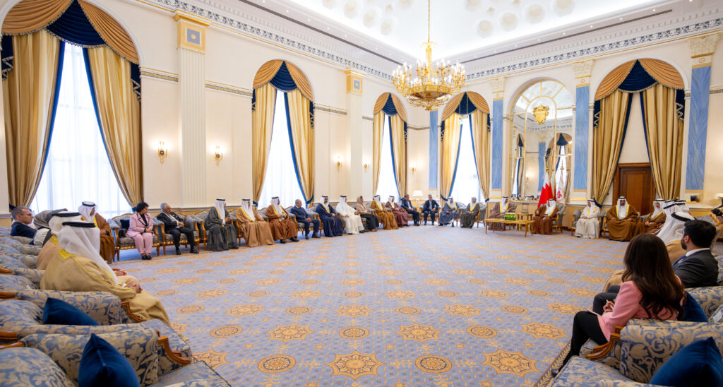 سمو ولي العهد رئيس مجلس الوزراء يلتقي معالي السيد أحمد بن سلمان المسلم رئيس مجلس النواب، ومعالي السيد علي بن صالح الصالح رئيس مجلس الشورى، وعدد من أعضاء مجلسي الشورى والنواب، بحضور سعادة السيد سمير عبدالله ناس رئيس غرفة تجارة وصناعة البحرين