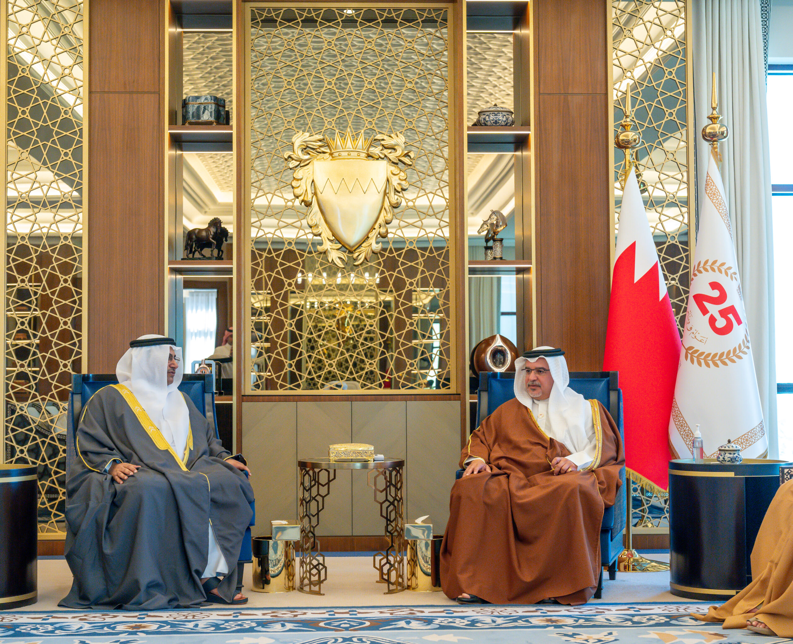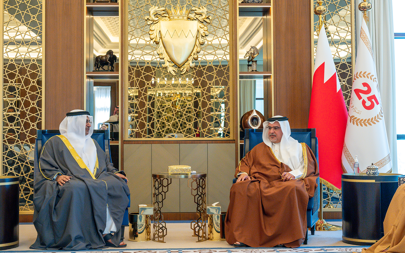 جاء ذلك لدى لقاء سموه، حفظه الله، اليوم في قصر القضيبية، بحضور سمو الشيخ محمد بن سلمان بن حمد آل خليفة، وسعادة السيد حمد بن فيصل المالكي وزير شؤون مجلس الوزراء، سعادة السيد عادل عبدالرحمن العسومي، عضو مجلس الشورى، وذلك بمناسبة انتهاء فترة عمله كرئيس للبرلمان العربي. وأشاد سموه بالجهود التي بذلها العسومي طوال فترة رئاسته للبرلمان العربي، والدور الذي قام به مع أعضاء البرلمان العربي في دعم القضايا العربية في المحافل البرلمانية الدولية.