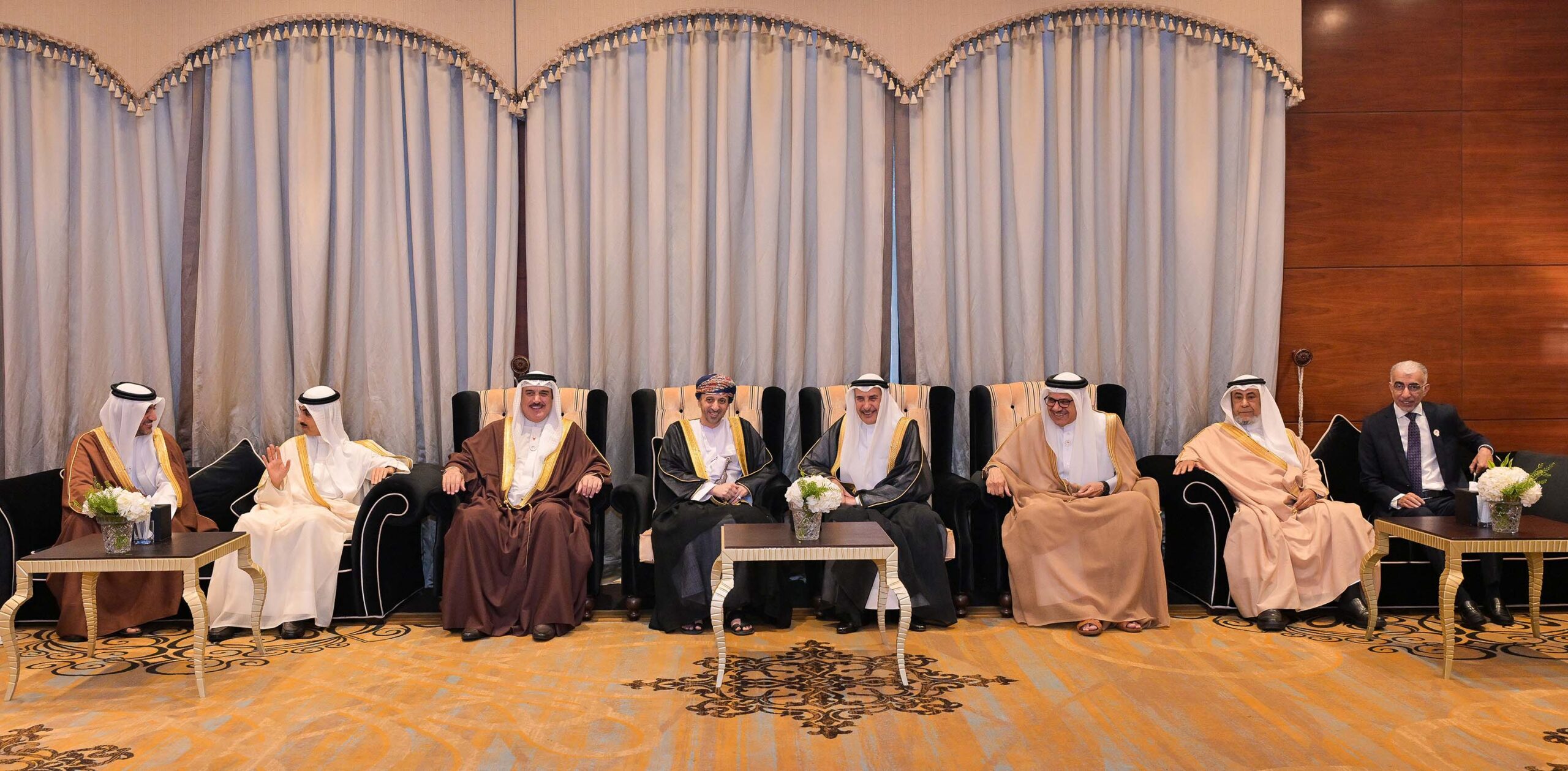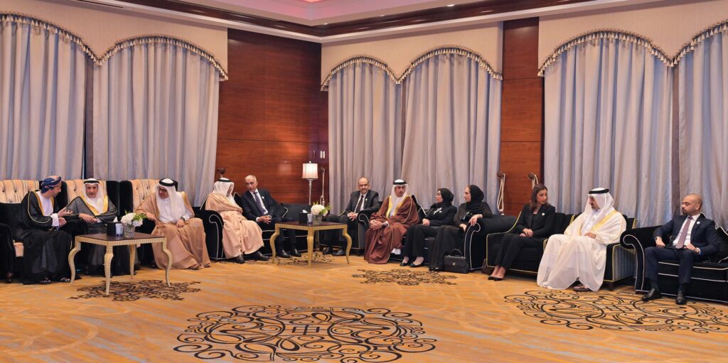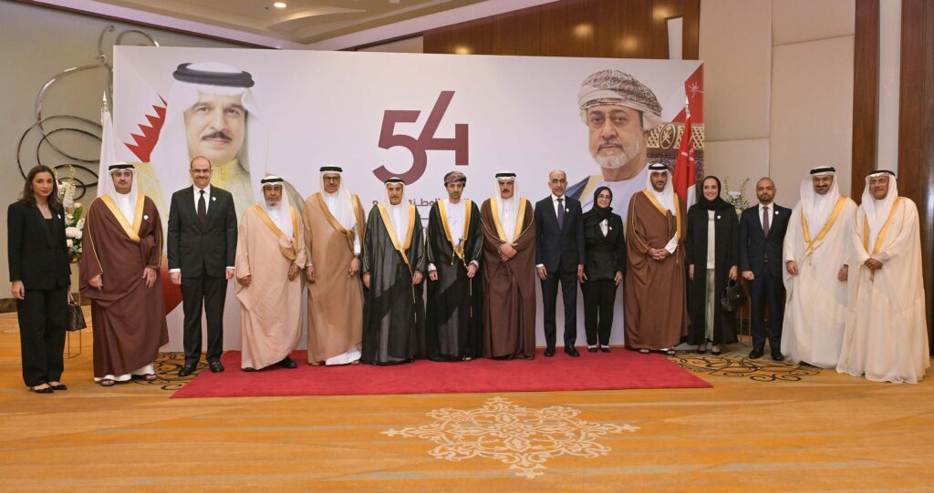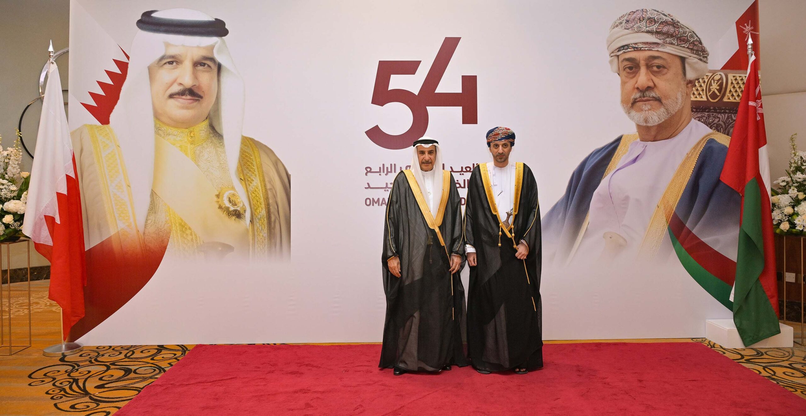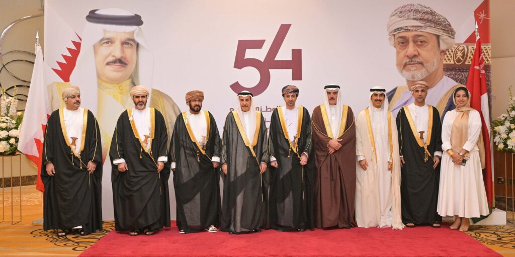 ولدى وصول معاليه موقع الحفل، يرافقه عدد من أصحاب السعادة الوزراء، كان في مقدمة مستقبليه سعادة السيد فيصل بن حارب بن حمد البوسعيدي، سفير سلطنة عمان لدى مملكة البحرين، حيث نقل معاليه تهاني وتبريكات صاحب السمو الملكي ولي العهد رئيس مجلس الوزراء حفظه الله، إلى صاحب الجلالة السلطان هيثم بن طارق المعظم، سلطان عمان، وإلى أخيه صاحب السمو السيد فهد بن محمود آل سعيد، نائب رئيس الوزراء لشؤون مجلس الوزراء بسلطنة عمان، وإلى الشعب العماني الشقيق.