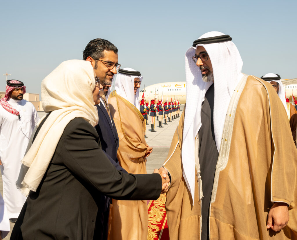سمو ولي العهد رئيس مجلس الوزراء في مقدمة مستقبلي سمو الشيخ خالد بن محمد بن زايد آل نهيان