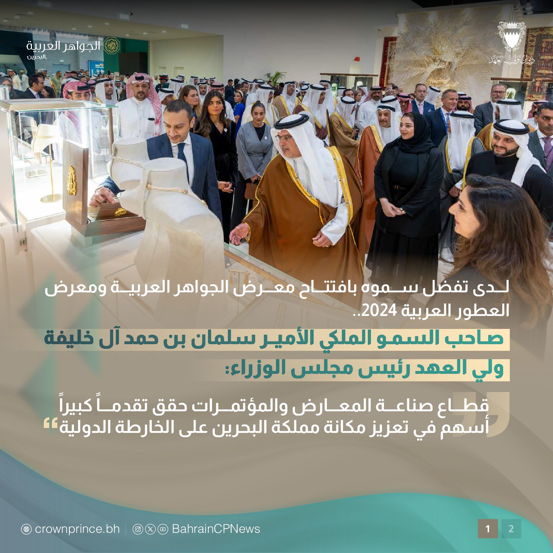 سمو ولي العهد رئيس مجلس الوزراء يتفضل بافتتاح معرض الجواهر العربية 2024 ومعرض العطور العربية 2024 في مركز البحرين العالمي للمعارض بمنطقة الصخير