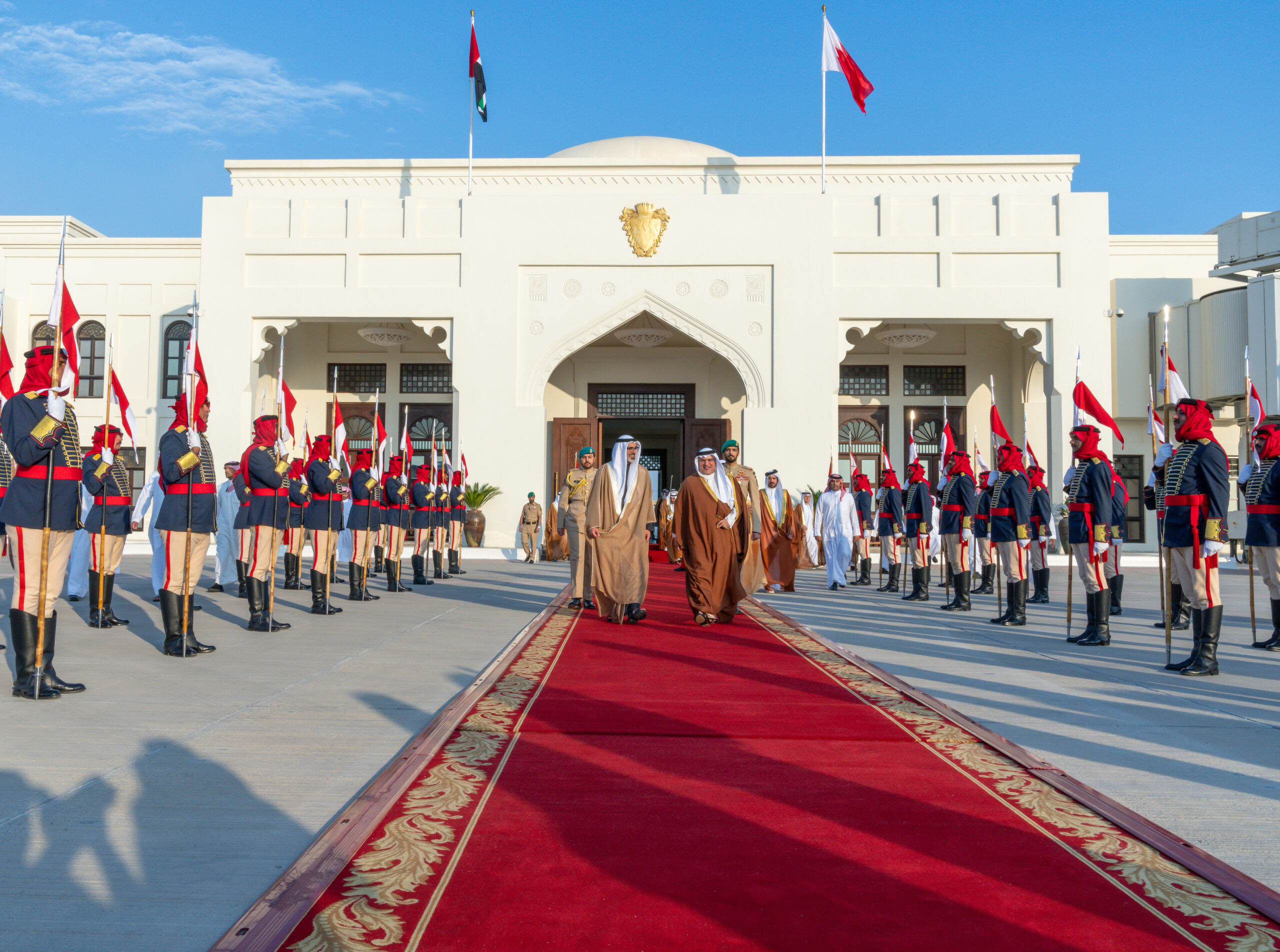 كان صاحب السمو الملكي الأمير سلمان بن حمد آل خليفة، ولي العهد رئيس مجلس الوزراء، في مقدمة مودعي أخيه سمو الشيخ خالد بن محمد بن زايد آل نهيان، ولي عهد أبوظبي بدولة الإمارات العربية المتحدة الشقيقة، لدى مغادرته مملكة البحرين بعد زيارة رسمية قام بها إلى المملكة، أجرى سموه خلالها مباحثات مع صاحب السمو الملكي ولي العهد رئيس مجلس الوزراء تناولت العلاقات الأخوية التاريخية وجوانب التعاون والعمل المشترك بين البلدين، خاصة في المجالات الاقتصادية والاستثمارية والتنموية وغيرها من المجالات الحيوية التي تعزز رؤيتهما تجاه تحقيق التنمية والازدهار للشعبين الشقيقين والسلام والاستقرار في المنطقة.