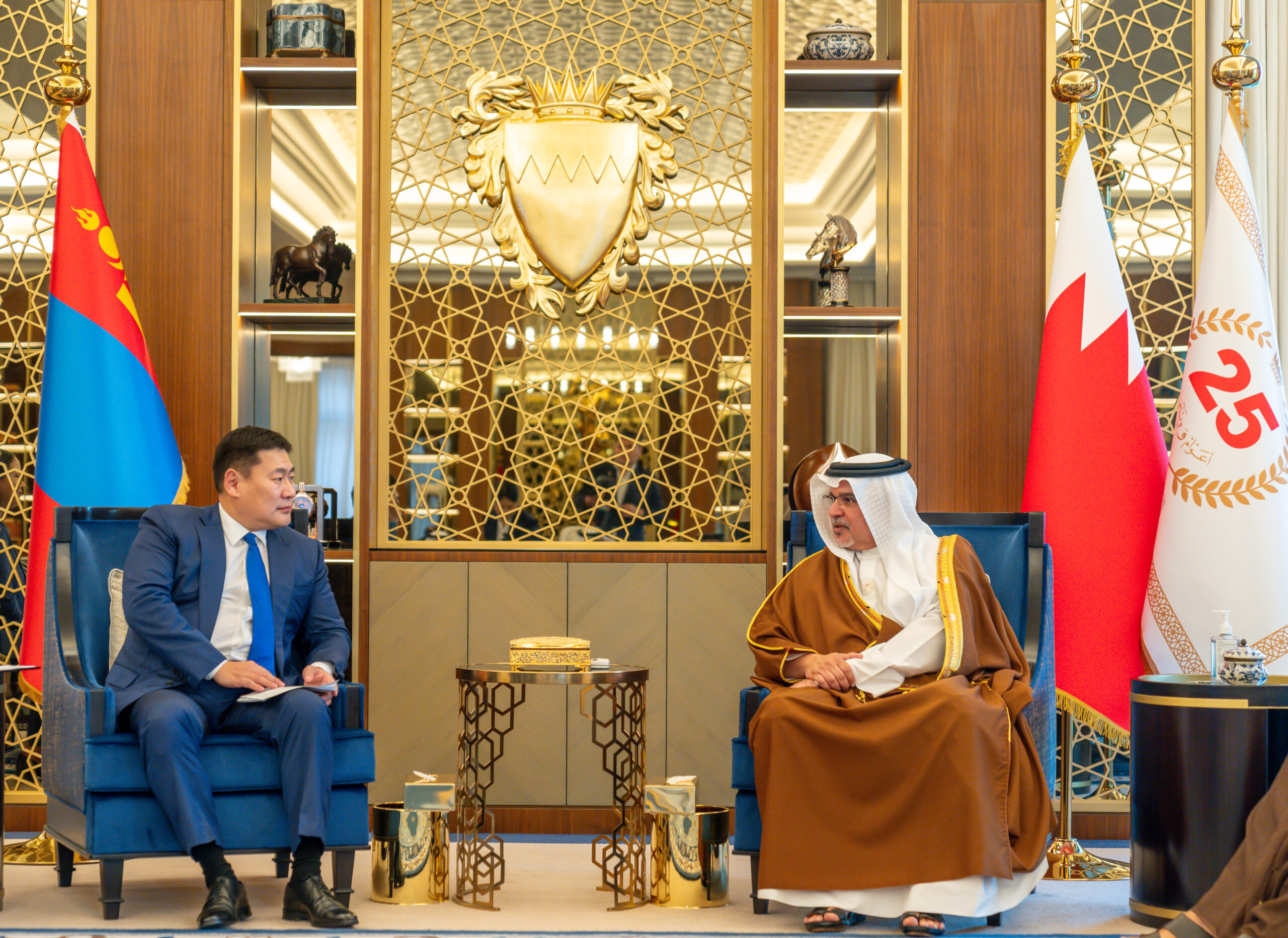 أكد صاحب السمو الملكي الأمير سلمان بن حمد آل خليفة، ولي العهد رئيس مجلس الوزراء أهمية تعزيز التعاون بين مملكة البحرين وجمهورية منغوليا الصديقة نحو آفاق أشمل، مشيراً سموه إلى الحرص على توطيد مسارات العلاقات الثنائية بين البلدين الصديقين والدفع بها قدماً نحو مستويات أكثر تميزاً بما يسهم في تحقيق الأهداف والتطلعات المشتركة.