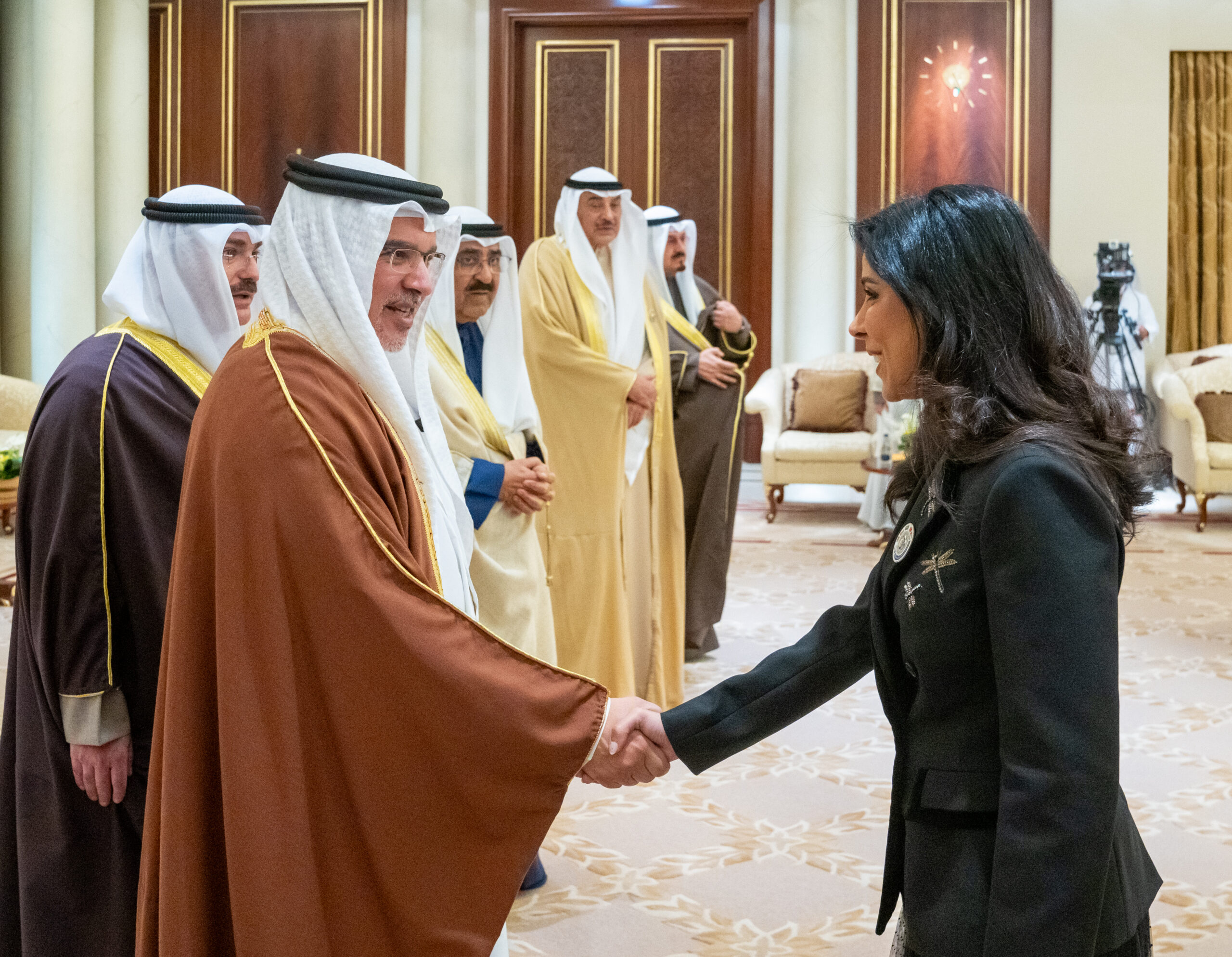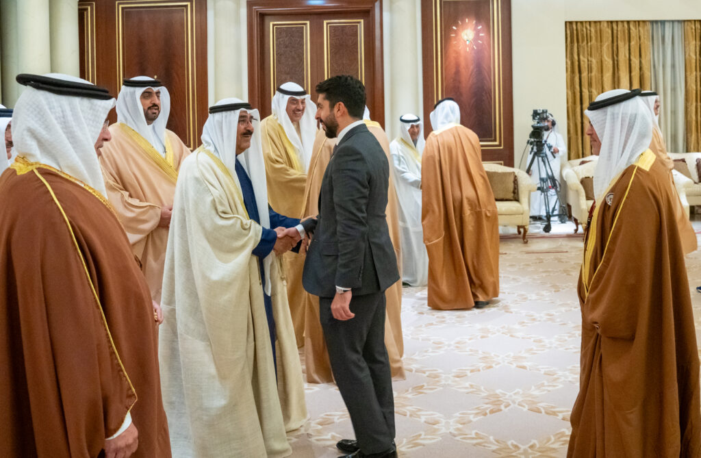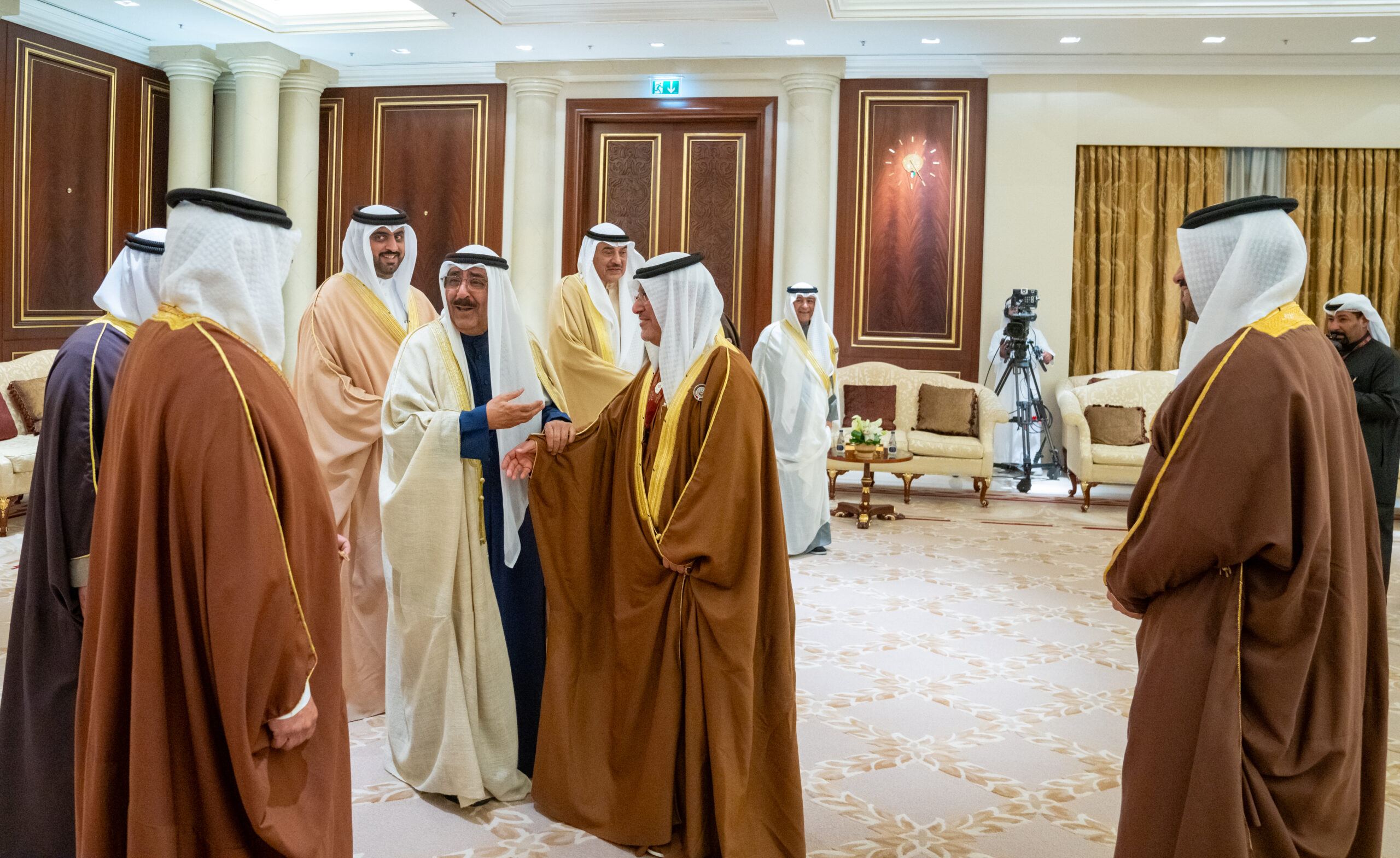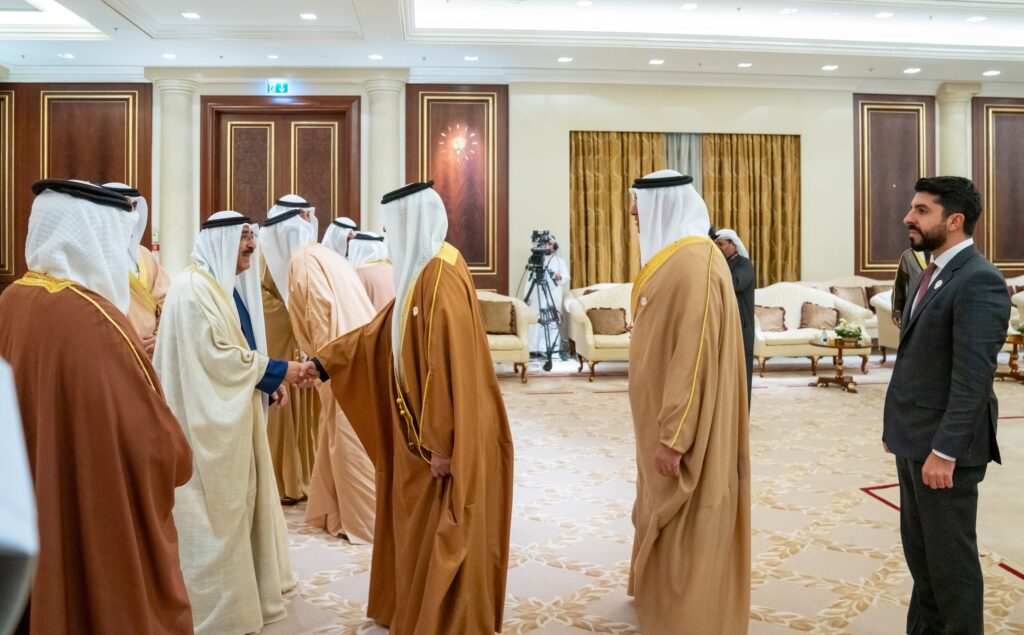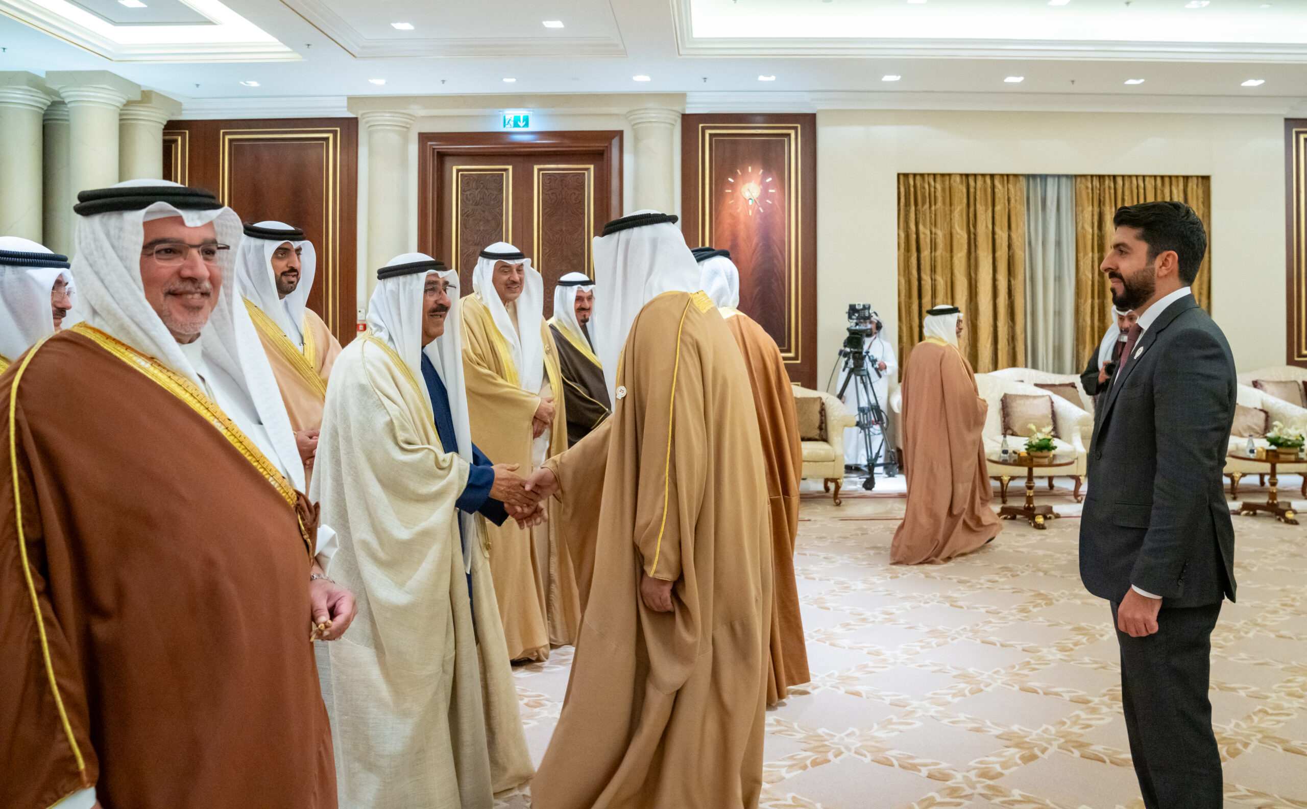 وكان في استقبال سموه، حفظه الله، لدى وصوله صاحب السمو الشيخ مشعل الأحمد الجابر الصباح، أمير دولة الكويت الشقيقة، وسمو الشيخ صباح خالد الحمد الصباح ولي عهد دولة الكويت الشقيقة، وسمو الشيخ أحمد عبدالله الأحمد الصباح رئيس مجلس الوزراء بدولة الكويت الشقيقة.