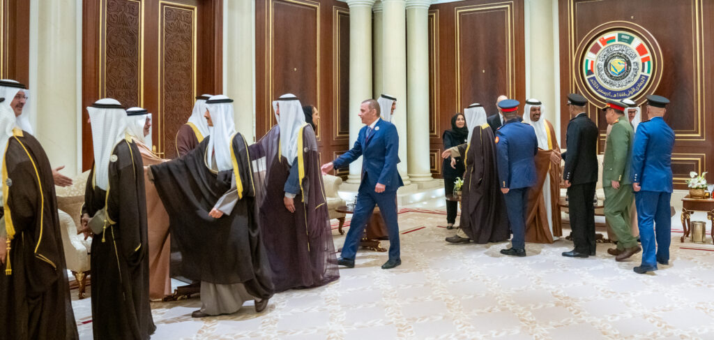 يسرني، وأنا أصل إلى دولة الكويت الشقيقة للمشاركة نيابة عن حضرة صاحب الجلالة الملك حمد بن عيسى آل خليفة، ملك البلاد المعظم، حفظه الله ورعاه، في اجتماع الدورة الخامسة والأربعين للمجلس الأعلى لمجلس التعاون لدول الخليج العربية، أن أشيد بالأواصر الأخوية الوثيقة والعلاقات التاريخية المتينة التي تجمع بين بلدينا الشقيقين.