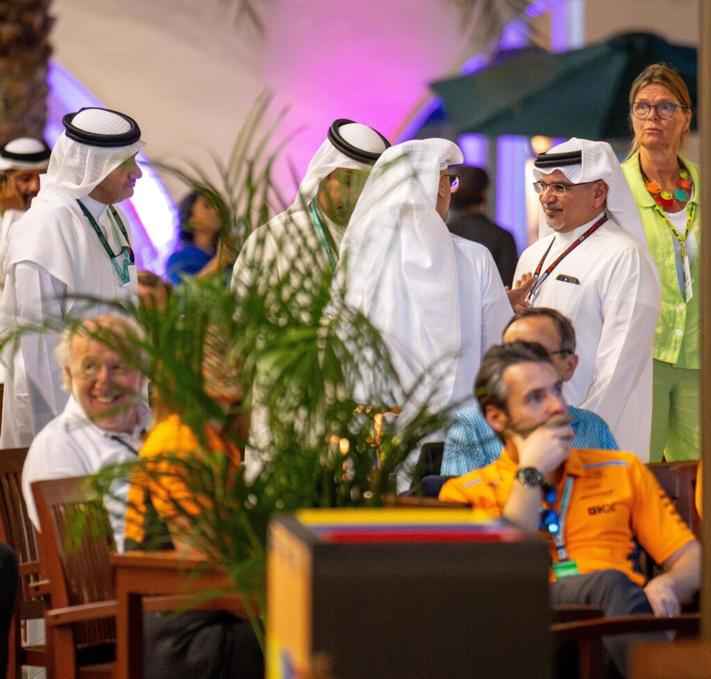 جاء ذلك لدى حضور سموه اليوم، يرافقه سمو الشيخ محمد بن سلمان بن حمد آل خليفة، ومعالي الشيخ سلمان بن خليفة آل خليفة وزير المالية والاقتصاد الوطني، وعدد من أصحاب المعالي والسعادة من كبار المسؤولين، التجارب التأهيلية لسباق جائزة الاتحاد للطيران الكبرى للفورمولا وان للسيارات التي تقام في حلبة مرسى ياس بأبوظبي بدولة الإمارات العربية المتحدة الشقيقة، حيث التقى سموه بكبار المسؤولين ومدراء الفرق والمتسابقين والمنظمين في الحلبة، وأثنى سموه على الجهود المتميزة لدولة الإمارات العربية المتحدة التي عززت من أهمية جائزة الاتحاد للطيران الكبرى للفورمولا وان ، معرباً عن تمنياته لدولة الإمارات وشعبها الشقيق دوام التطور والازدهار، وللقائمين على حلبة مرسى ياس لسباقات الفورمولا وان تحقيق المزيد من التوفيق والنجاح.