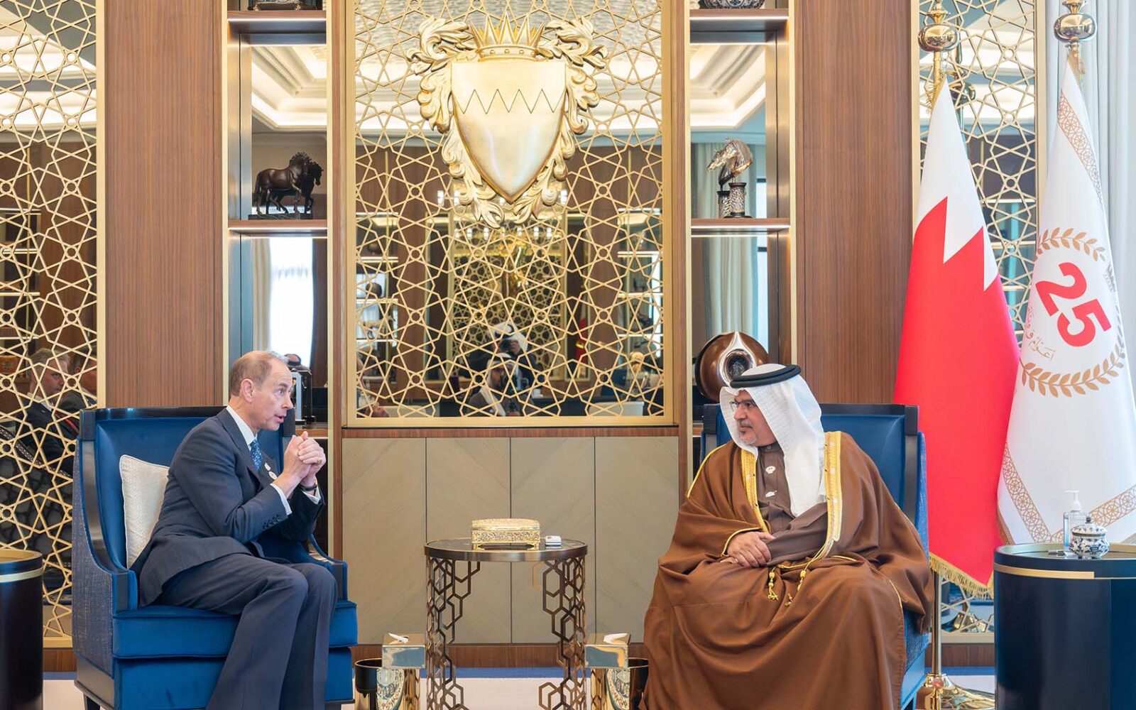 جاء ذلك لدى لقاء سموه حفظه الله في القضيبية اليوم، صاحب السمو الملكي الأمير إدوارد دوق إدنبرة، بحضور سمو الشيخ علي بن خليفة آل خليفة مستشار صاحب السمو الملكي ولي العهد رئيس مجلس الوزراء، وسمو الشيخ عيسى بن سلمان بن حمد آل خليفة رئيس مجلس أمناء وقف عيسى بن سلمان التعليمي الخيري رئيس مجلس إدارة صندوق العمل، وسمو الشيخ محمد بن سلمان بن حمد آل خليفة، ومعالي الشيخ خالد بن عبدالله آل خليفة نائب رئيس مجلس الوزراء، والفريق أول معالي الشيخ راشد بن عبدالله آل خليفة وزير الداخلية، ومعالي الشيخ سلمان بن خليفة آل خليفة وزير المالية والاقتصاد الوطني، ومعالي الشيخ فواز بن محمد آل خليفة سفير مملكة البحرين لدى المملكة المتحدة، حيث رحب سموه بصاحب السمو الملكي الأمير إدوارد دوق إدنبرة والوفد المرافق، لافتًا إلى أهمية مواصلة تطوير أوجه العلاقات الجامعة بين البلدين بما يصب في تحقيق المصالح المشتركة ويعود بالخير على الجميع.