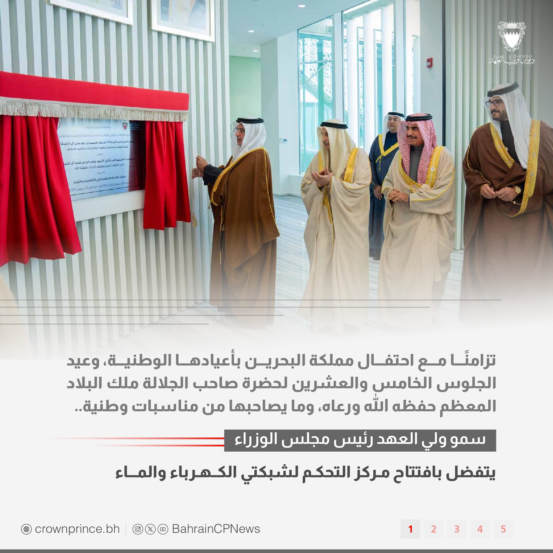 سمو ولي العهد رئيس مجلس الوزراء يتفضل بافتتاح مركز التحكم لشبكتي الكهرباء والماء