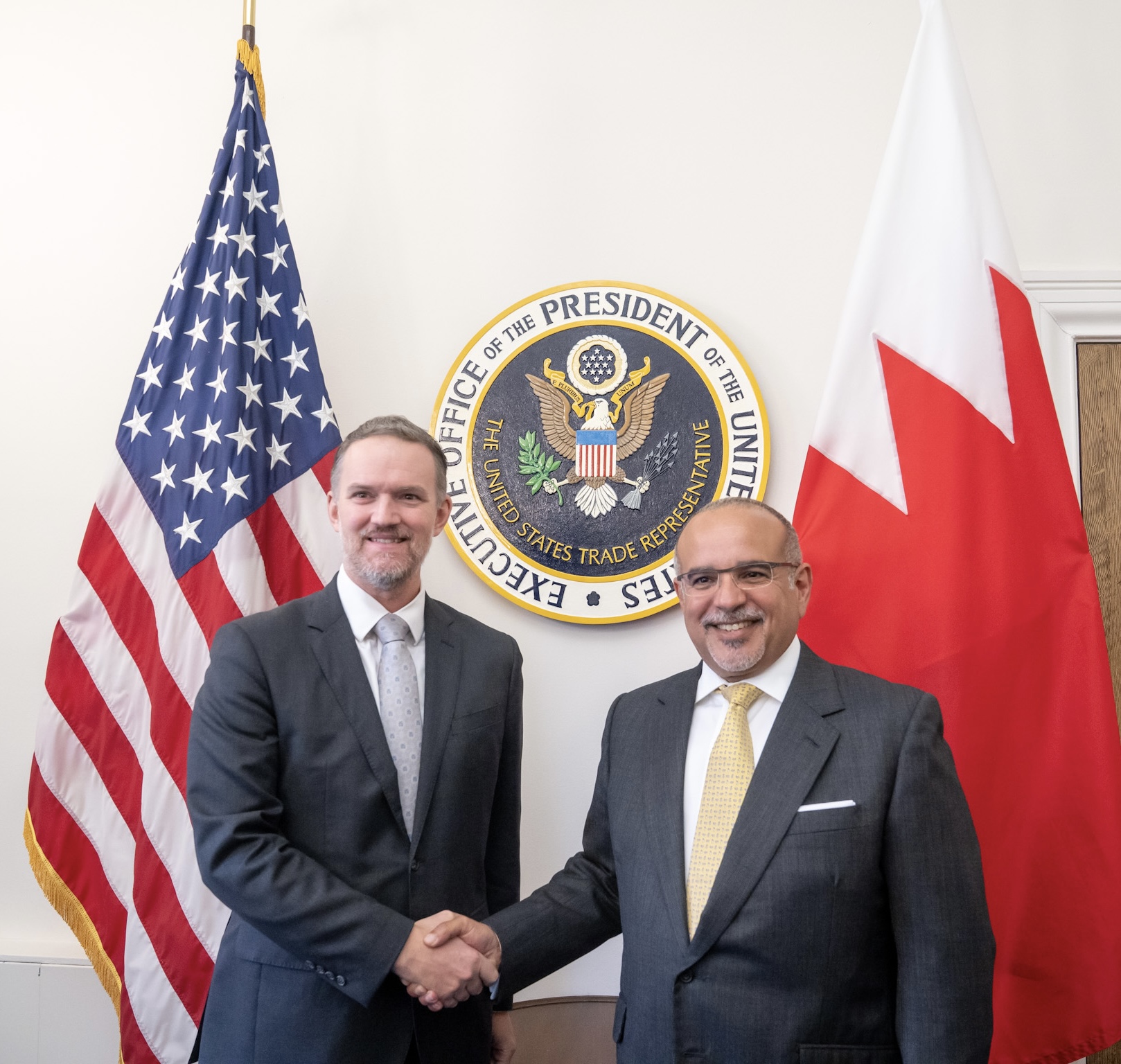 جاء ذلك لدى لقاء سموه حفظه الله اليوم ، بحضور سمو الشيخ عيسى بن سلمان بن حمد آل خليفة وزير ديوان رئيس مجلس الوزراء، وعدد من أصحاب المعالي والسعادة من كبار المسؤولين، سعادة السفير جيميسون جرير الممثل التجاري للولايات المتحدة الأمريكية، وذلك في إطار الزيارة الرسمية التي يقوم بها سموه إلى الولايات المتحدة الأمريكية الصديقة، حيث أشار سموه إلى المستويات المتقدمة التي وصل إليها العمل والتنسيق المشترك بين البلدين الصديقين في مختلف المجالات لا سيما المجالات التجارية والاستثمارية والاقتصادية، بما يسهم في خلق مزيدٍ من الفرص الاستثمارية والشراكات التجارية الواعدة، بما يعزز التكامل الاقتصادي، ويعود بالخير والنماء على البلدين والشعبين الصديقين.