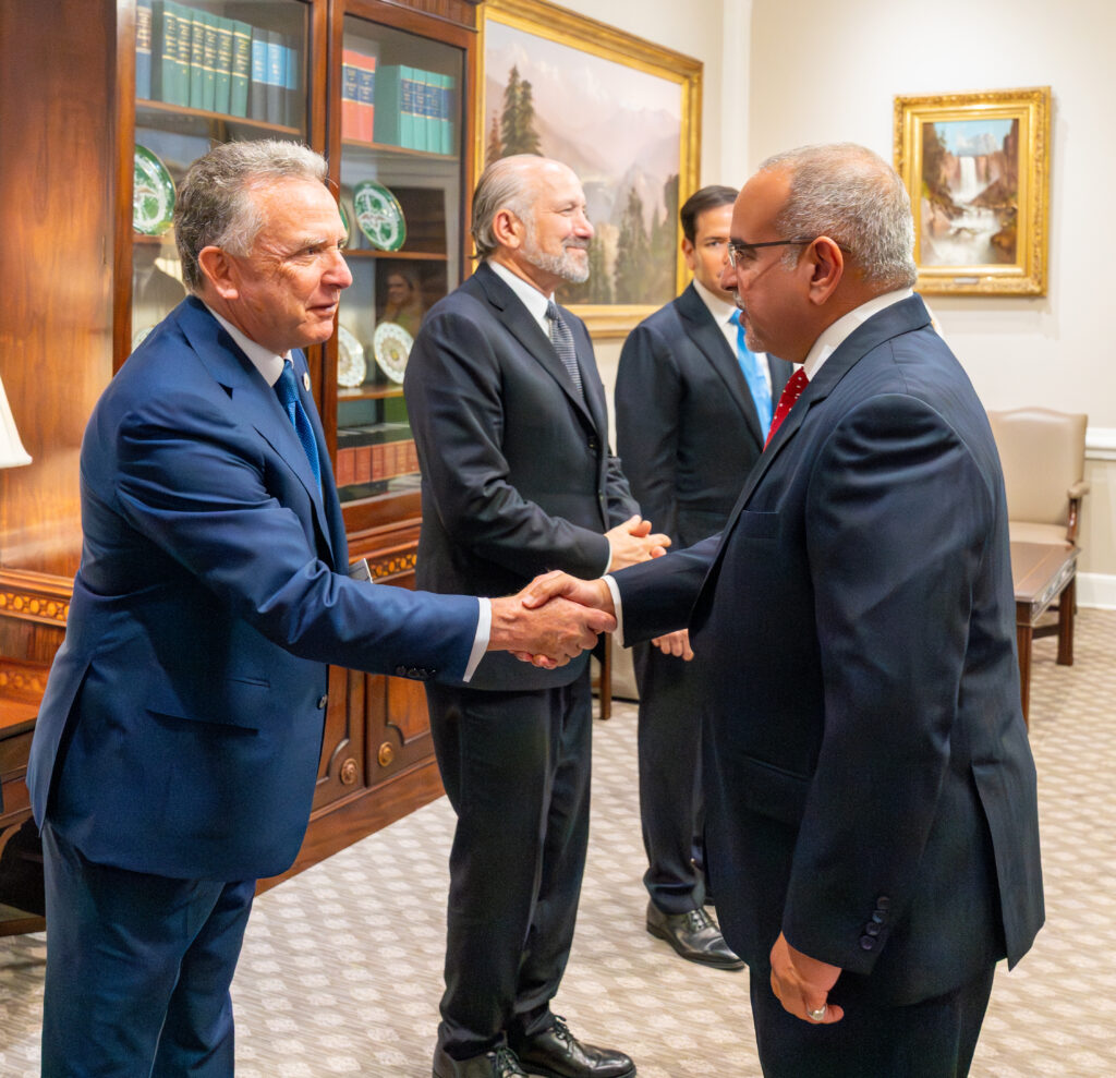 ولفت سموه إلى ما يجمع مملكة البحرين والولايات المتحدة الأمريكية من علاقات اقتصادية متميزة وما وصلت إليه من مستوياتٍ متقدمة، مشيرًا إلى ما أثمرت عنه اتفاقية التجارة الحرة بين مملكة البحرين والولايات المتحدة الأمريكية، وما تبعها من إنشاء منطقة التجارة الأمريكية في المملكة، والتي أسهمت في تعزيز التعاون الاقتصادي بين البلدين، مؤكدًا أهمية فتح آفاقًا جديدة لفرص التعاون الاقتصادي والاستثماري بما يسهم في تعميق العلاقات الاقتصادية.