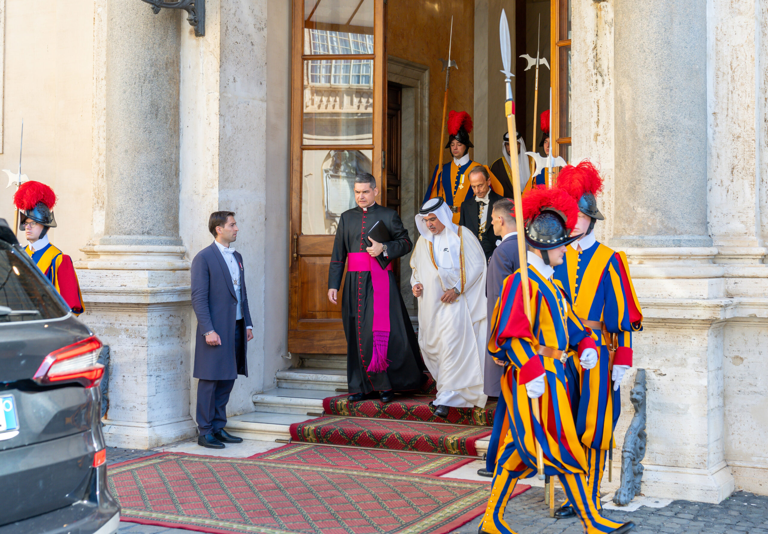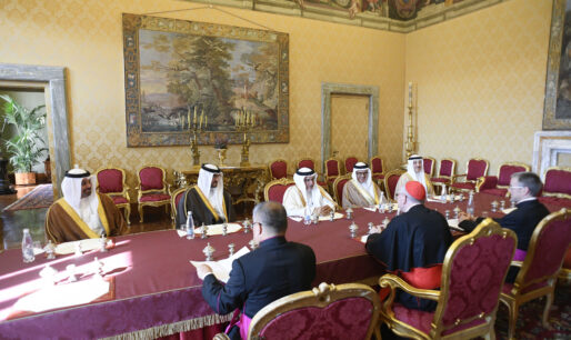 واستعرض سموه مع قداسته العلاقات الثنائية وآفاق التعاون المشترك بما يخدم القضايا الإنسانية، كما تم التأكيد على القيم المشتركة بين الجانبين والمتمثلة في تعزيز قيم التسامح، والتعايش والتآخي والحوار.