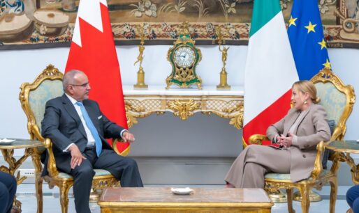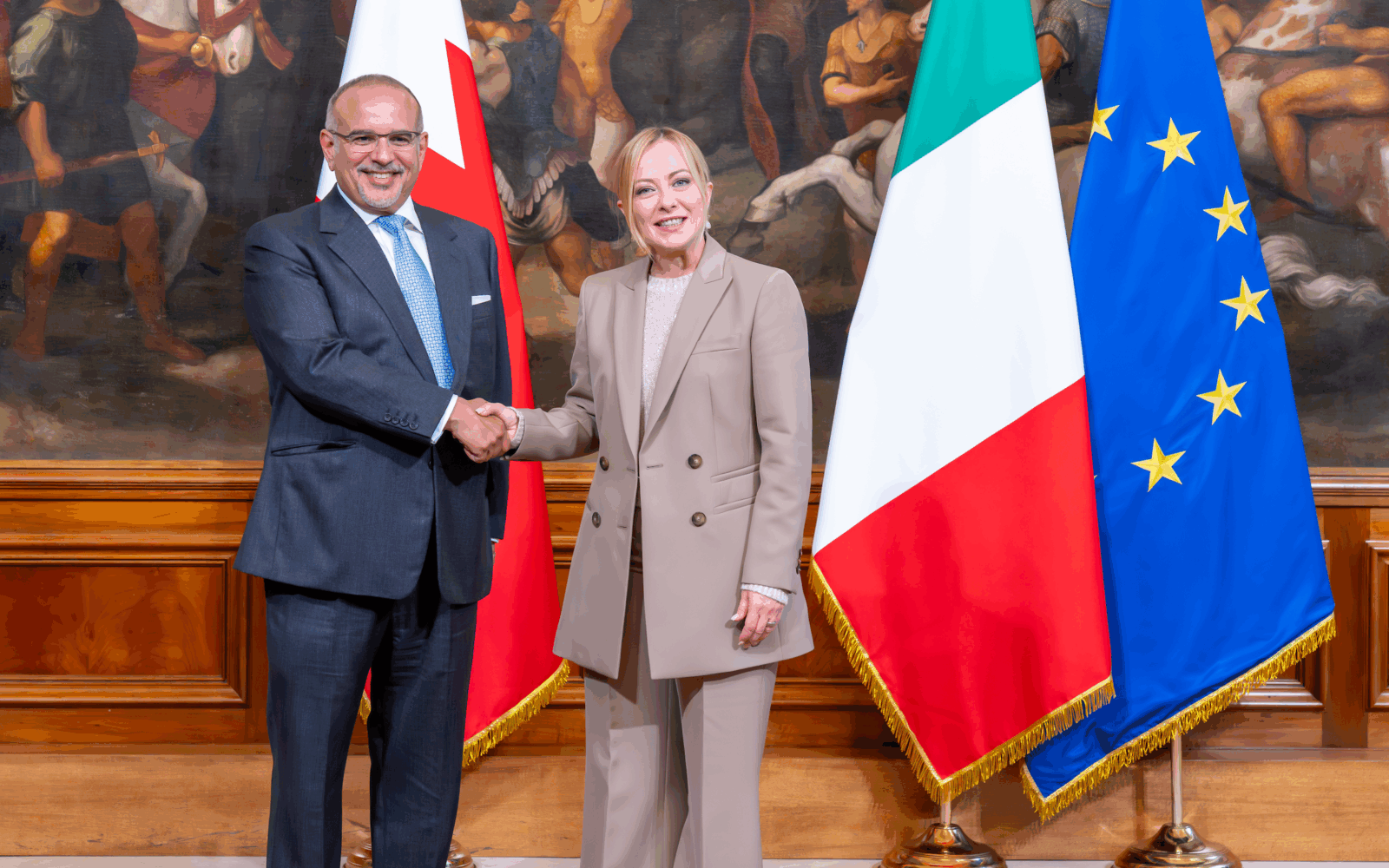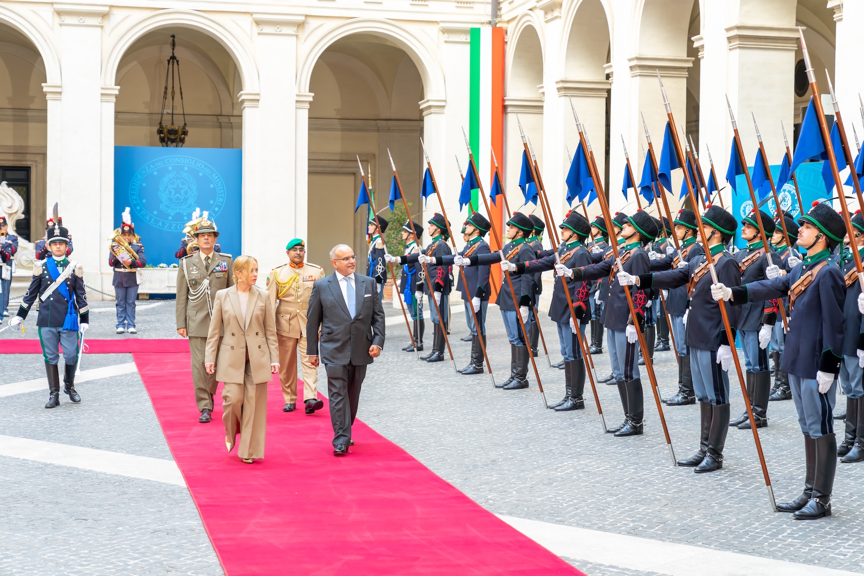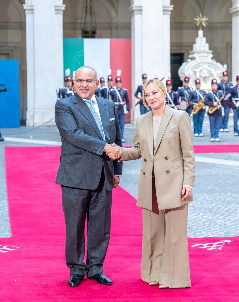 من جانبها أشادت دولة السيدة جورجيا ميلوني رئيسة وزراء الجمهورية الإيطالية الصديقة بالدور القيادي لحضرة صاحب الجلالة الملك حمد بن عيسى آل خليفة ملك البلاد المعظم حفظه الله ورعاه في تعزيز التعاون والاستقرار والسلام بالمنطقة والعالم، مرحبةً بزيارة صاحب السمو الملكي الأمير سلمان بن حمد آل خليفة ولي العهد رئيس مجلس الوزراء حفظه الله التي تجسد ما تحظى به العلاقات البحرينية الإيطالية من حرص واهتمام متبادل لتعزيزها بما يصب في تحقيق الأهداف والتطلعات المشتركة.