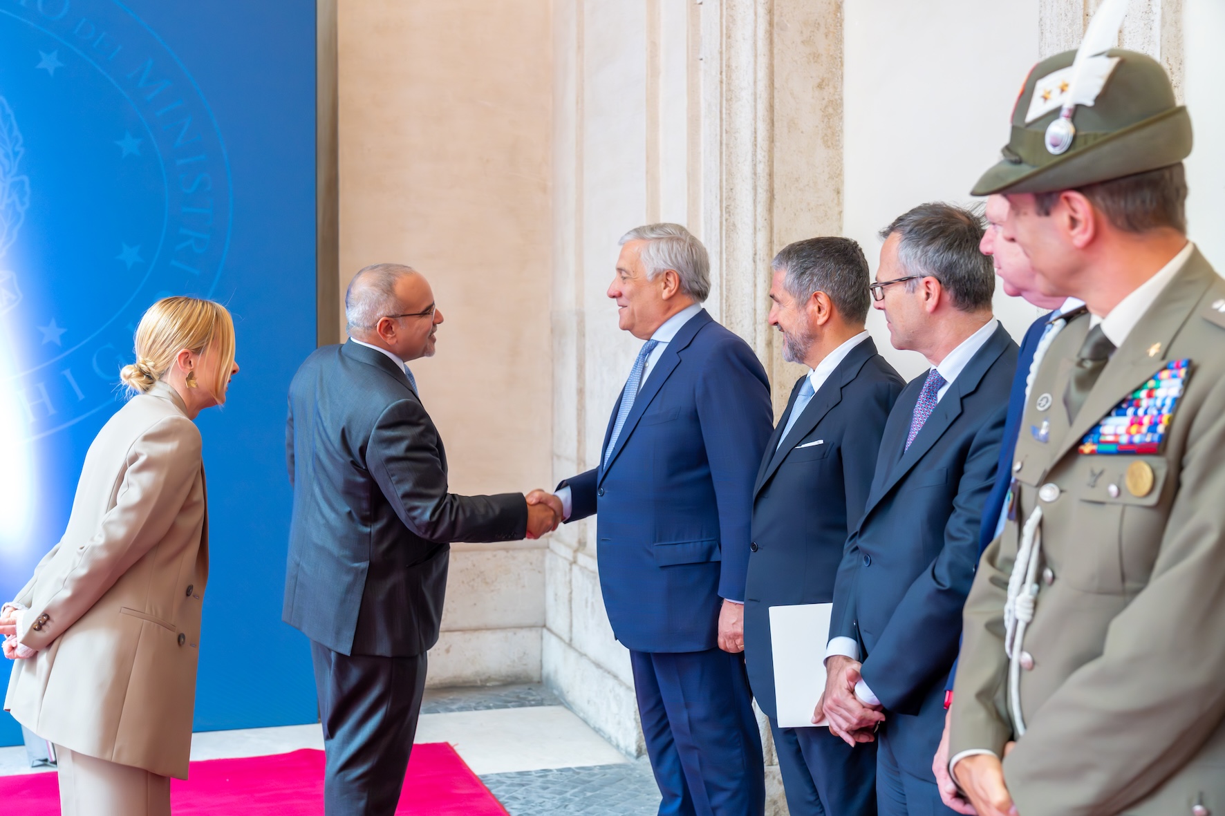 وبحضور صاحب السمو الملكي ولي العهد رئيس مجلس الوزراء ورئيسة وزراء الجمهورية الإيطالية تم التوقيع على شراكة التعاون والاستثمارات الاستراتيجية بين وزارة المالية والاقتصاد الوطني بمملكة البحرين ووزارة المؤسسات والصناعات الإيطالية بجمهورية إيطاليا، وقعها من الجانب البحريني معالي الشيخ سلمان بن خليفة آل خليفة وزير المالية والاقتصاد الوطني، بينما وقعها من الجانب الإيطالي معالي السيد أدولفو أورسو وزير المؤسسات والصناعات الإيطالية.
