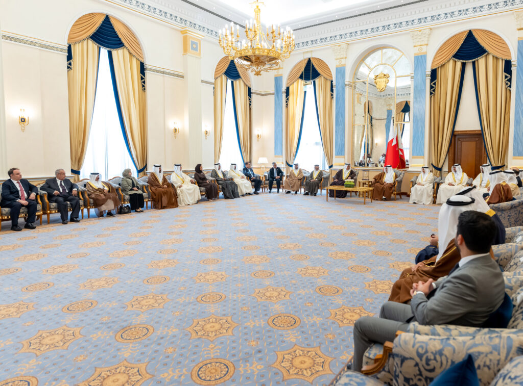 سمو ولي العهد رئيس مجلس الوزراء يلتقي معالي رئيس مجلس النواب ومعالي رئيس مجلس الشورى وعدد من أعضاء مجلسي الشورى والنواب بحضور سعادة رئيس غرفة تجارة وصناعة البحرين