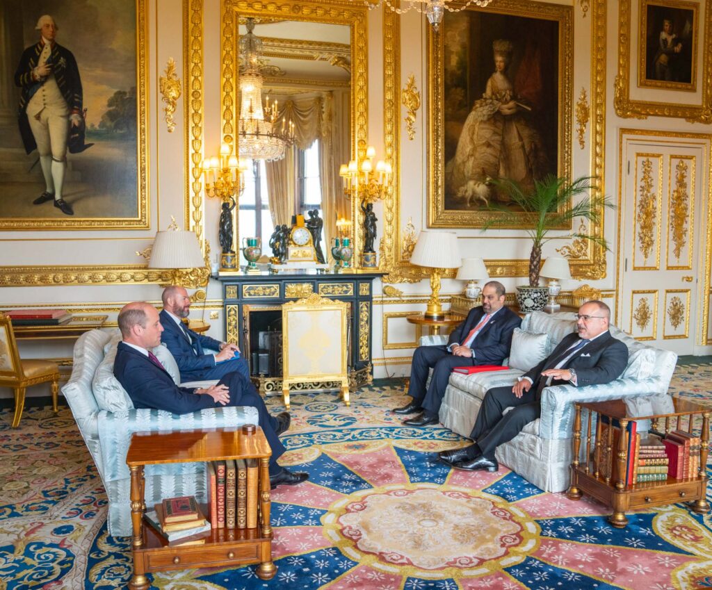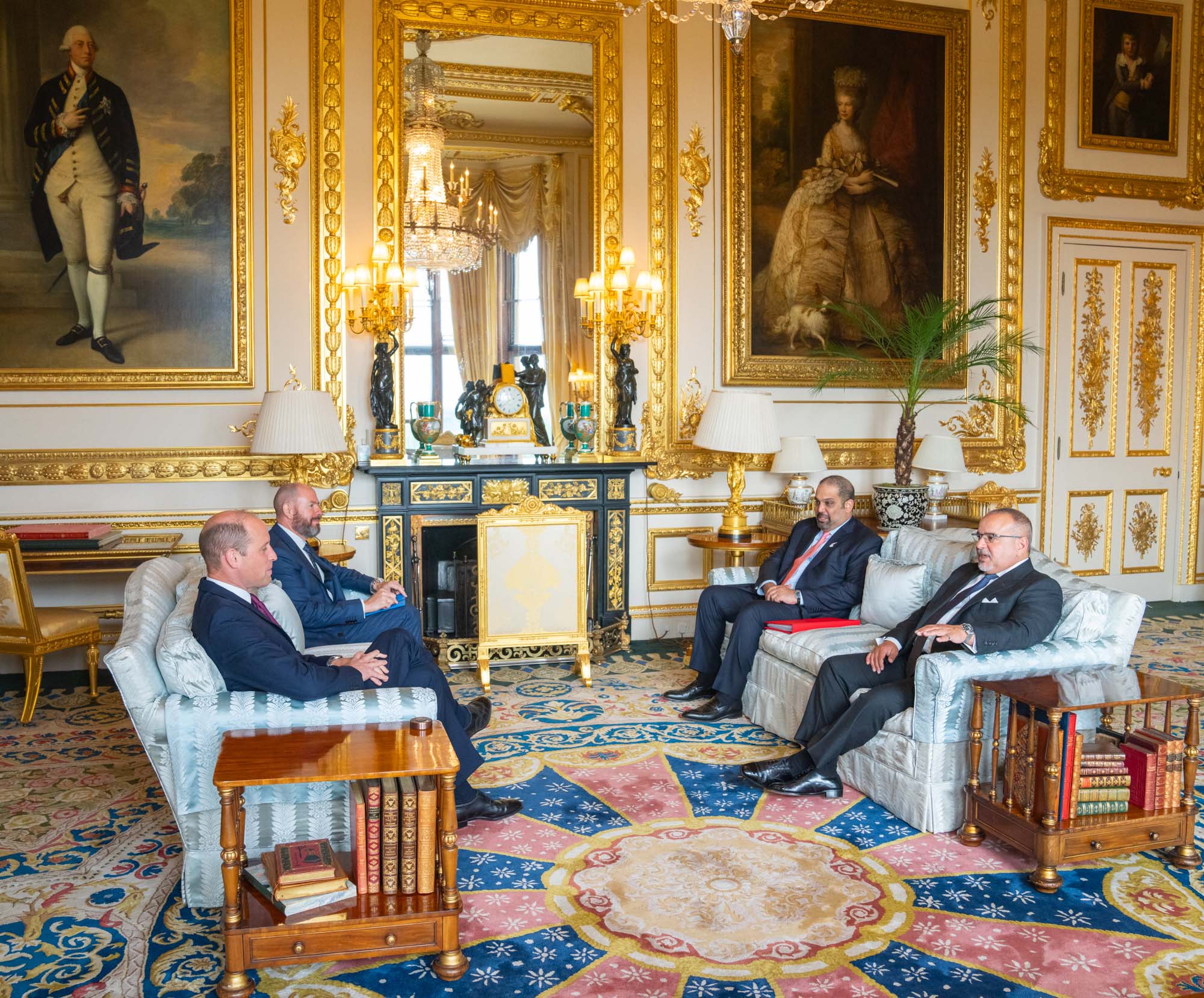 جاء ذلك لدى لقاء سموه حفظه الله في قلعة ويندسور اليوم، صاحب السمو الملكي الأمير وليام ولي عهد المملكة المتحدة أمير ويلز، بحضور معالي الشيخ سلمان بن خليفة آل خليفة وزير المالية والاقتصاد الوطني، وذلك في إطار الزيارة الرسمية التي يقوم بها صاحب السمو الملكي ولي العهد رئيس مجلس الوزراء إلى المملكة المتحدة، حيث نقل سموه تحيات حضرة صاحب الجلالة ملك البلاد المعظم حفظه الله ورعاه إلى صاحب الجلالة الملك تشارلز الثالث ملك المملكة المتحدة لبريطانيا العظمى وشمال إيرلندا، وصاحب السمو الملكي الأمير وليام، وتمنيات جلالته للمملكة المتحدة الصديقة دوام التقدم والتطور. منوهًا سموه بمستويات التعاون المتنامية بين البلدين وما تشهده من تطورٍ وتقدم والتي تستند في عمقها إلى متانة العلاقات الثنائية، وأهمية مواصلة الدفع بها للوصول إلى التطلعات المنشودة.