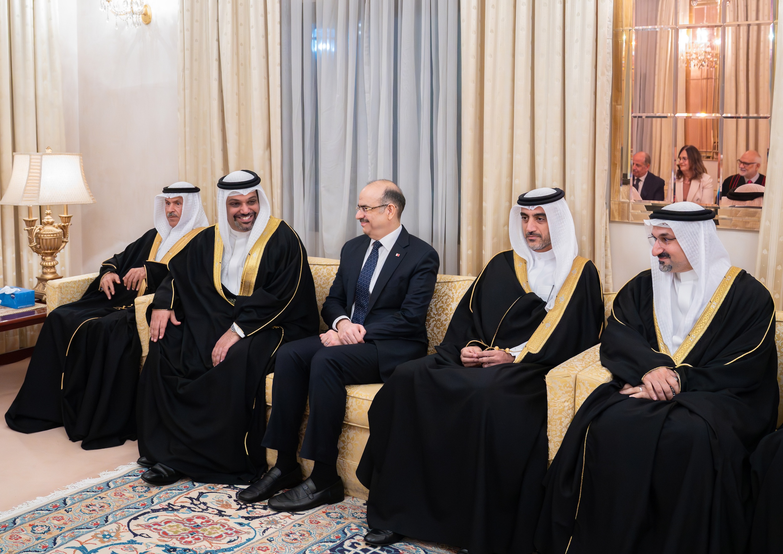 جاء ذلك لدى زيارة سموه حفظه الله اليوم، يرافقه معالي الشيخ سلمان بن خليفة آل خليفة وزير المالية والاقتصاد الوطني، وعدد من أصحاب المعالي والسعادة من كبار المسؤولين، مجلس عائلة كانو، ومجلس عائلتي الجشي والخزاعي، ومجلس معالي السيد علي بن صالح الصالح رئيس مجلس الشورى، ومجلس المرحوم يوسف خليل المؤيد، حيث تبادل سموه مع أصحاب المجالس والحضور التهاني والتبريكات بمناسبة حلول شهر رمضان المبارك، مشيرا إلى أنه في هذا الشهر الفضيل تتجدد معاني الرحمة والتكافل، وتتعزز خلاله قيم التواصل والتآخي، بما يعكس أصالة المجتمع البحريني وتماسكه، مؤكداً أن المجالس الرمضانية تشكل منصات لتبادل الآراء، وتعكس عمق الروابط الاجتماعية التي يتميز بها المجتمع البحريني، بما يسهم في تعزيز الوحدة الوطنية وتماسك النسيج المجتمعي.