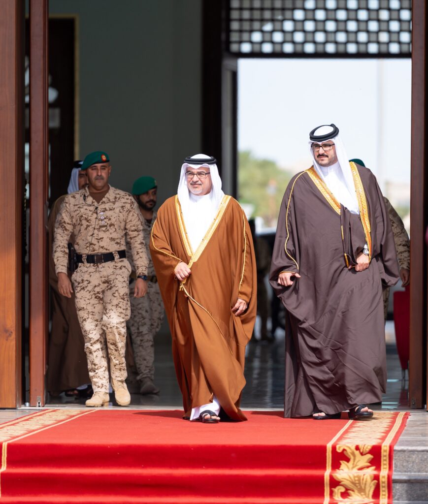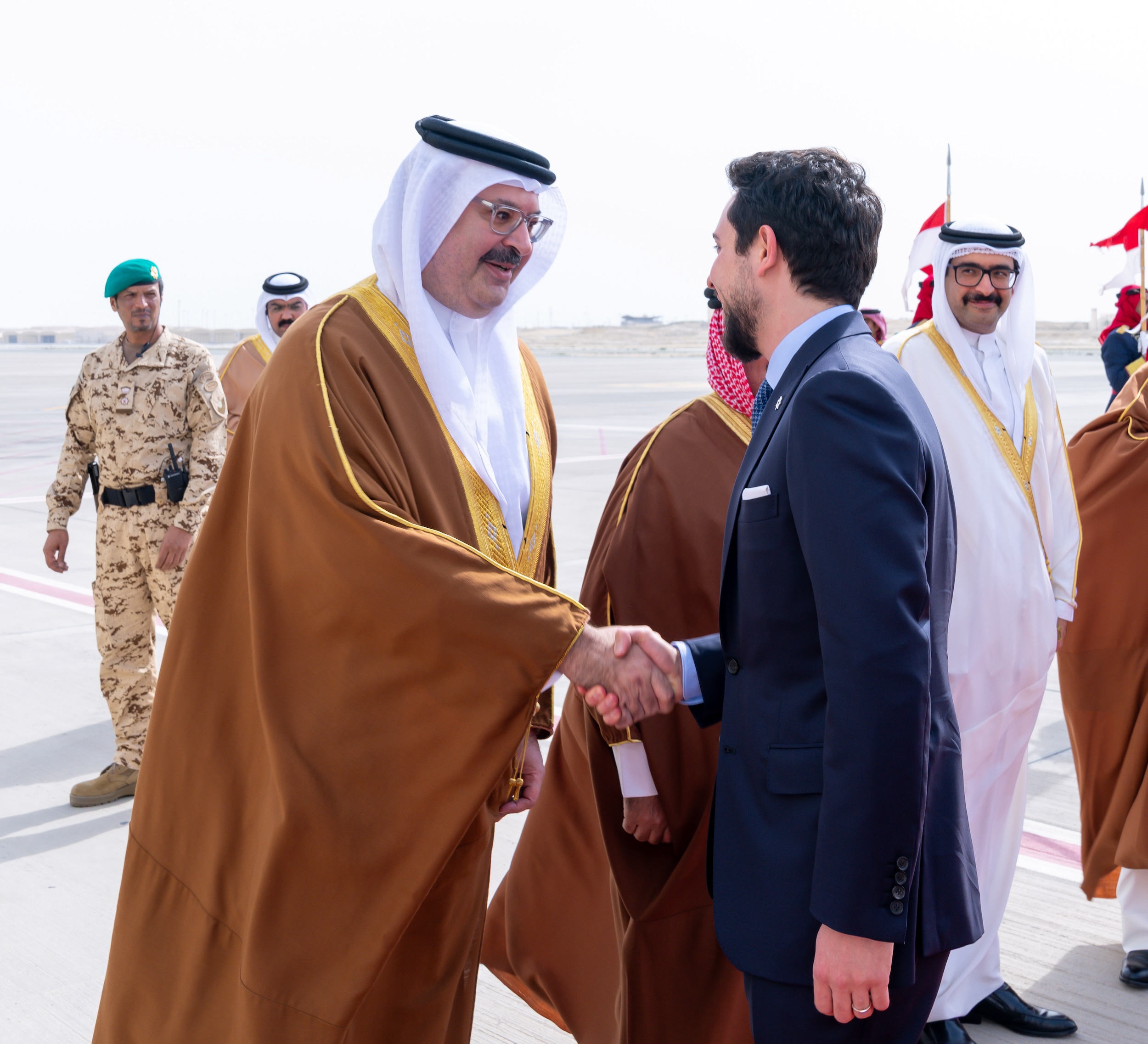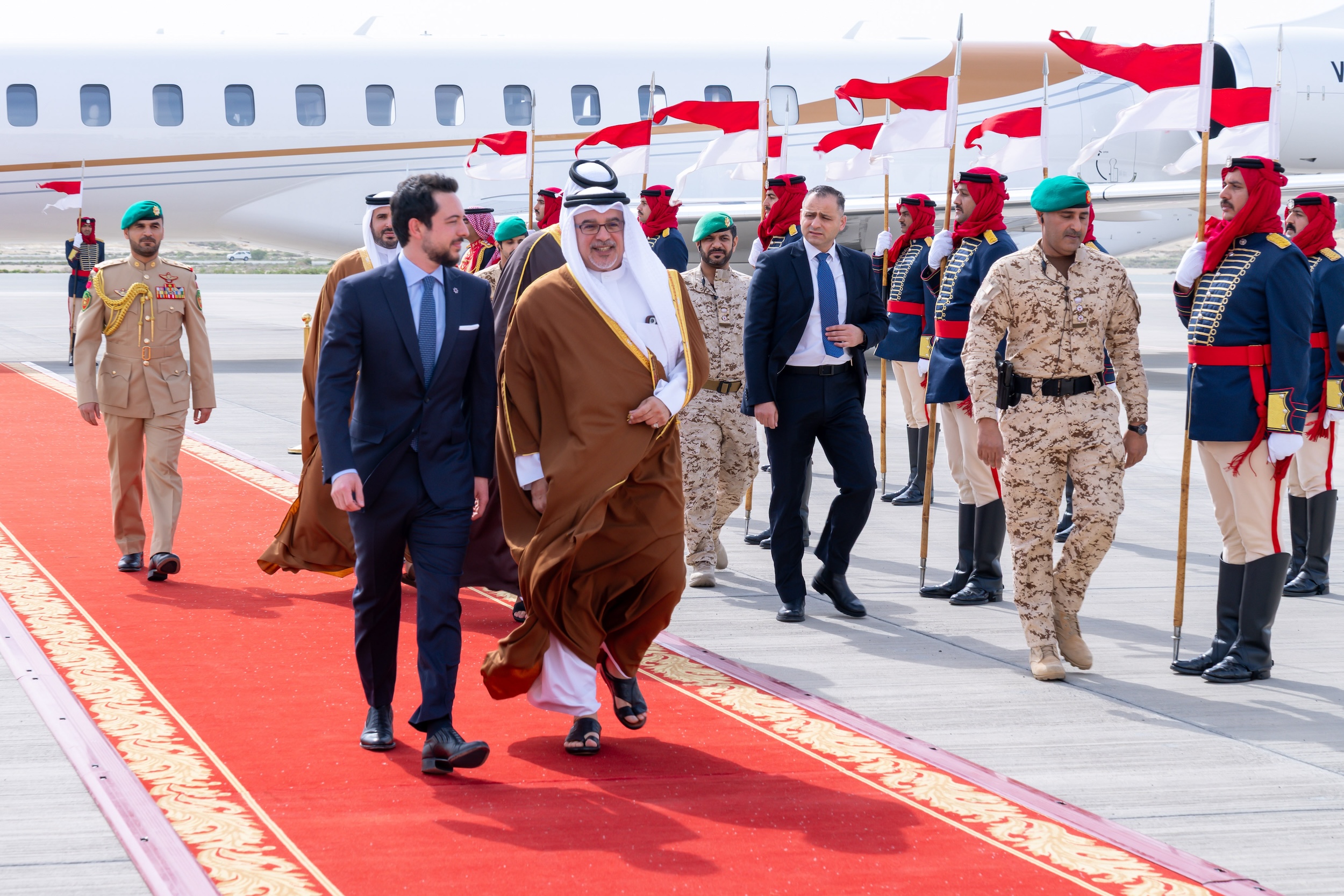سمو ولي العهد رئيس مجلس الوزراء في مقدمة مستقبلي ولي عهد المملكة الأردنية الهاشمية لدى وصوله إلى مملكة البحرين