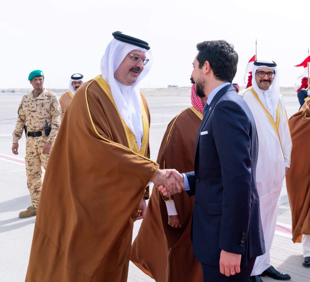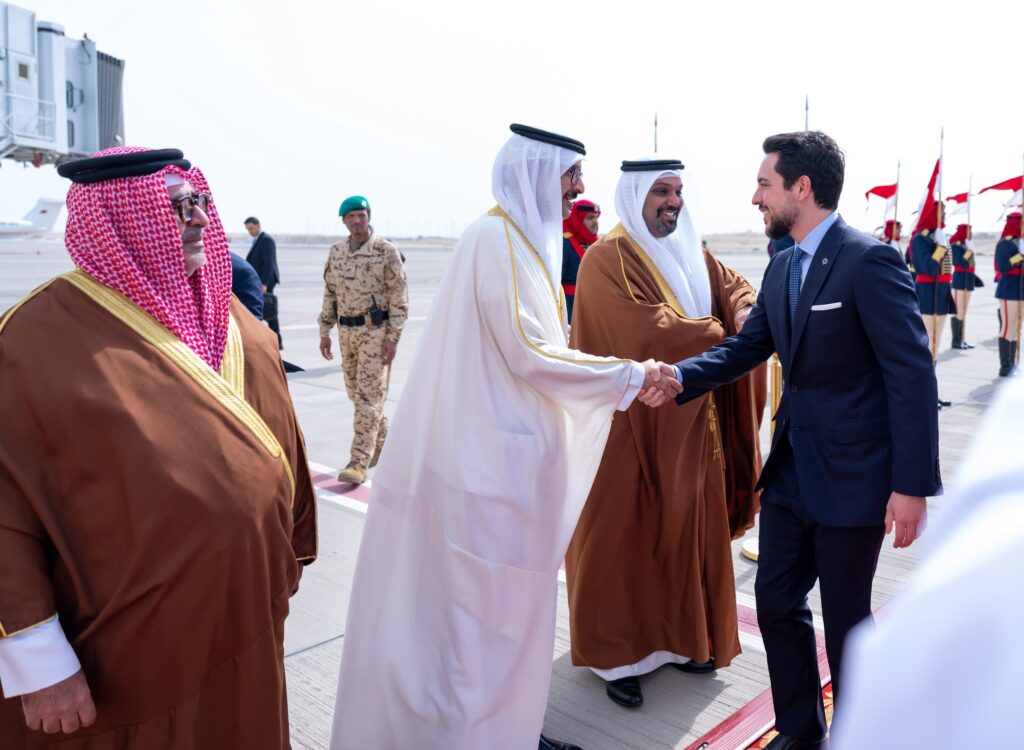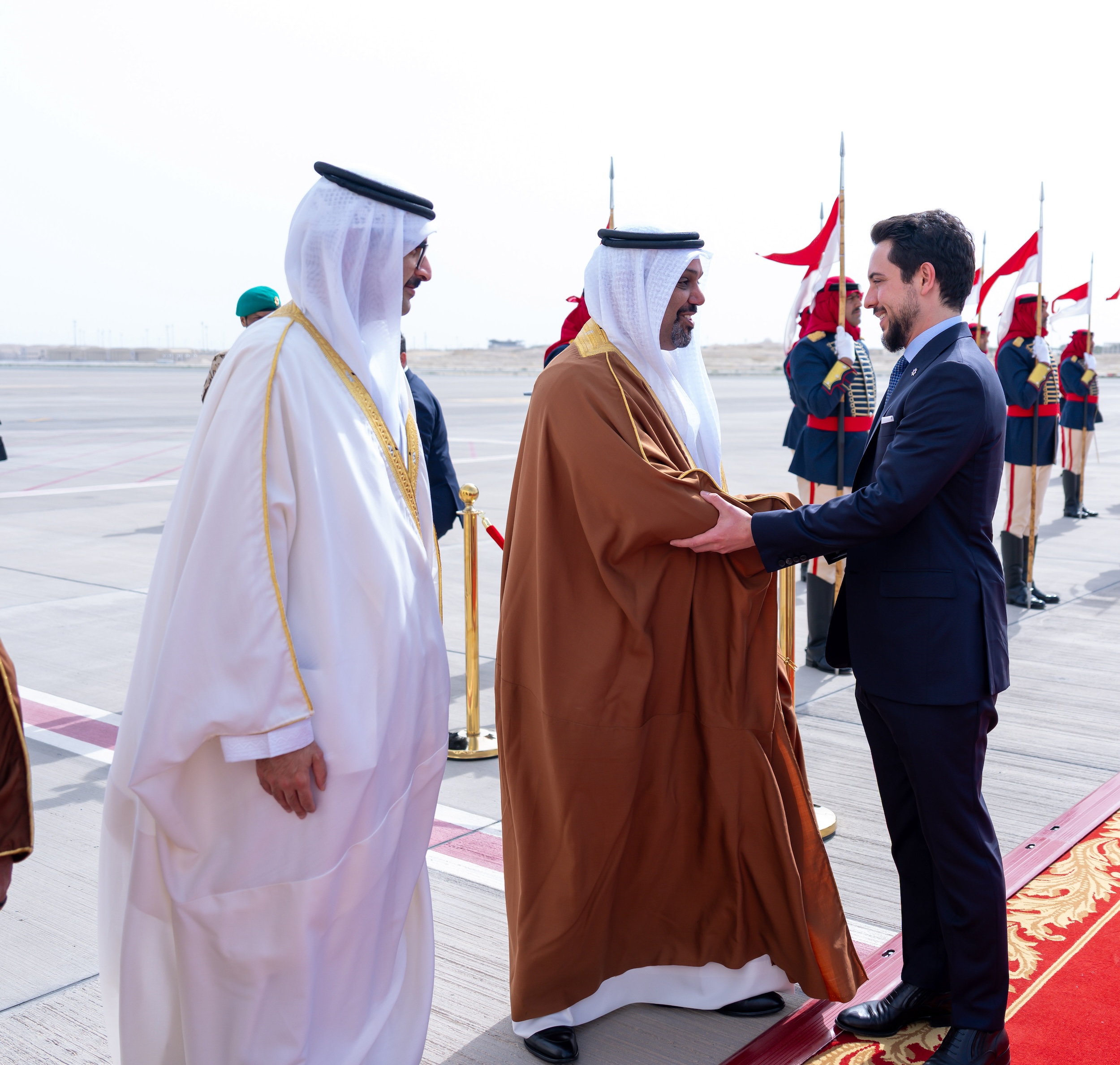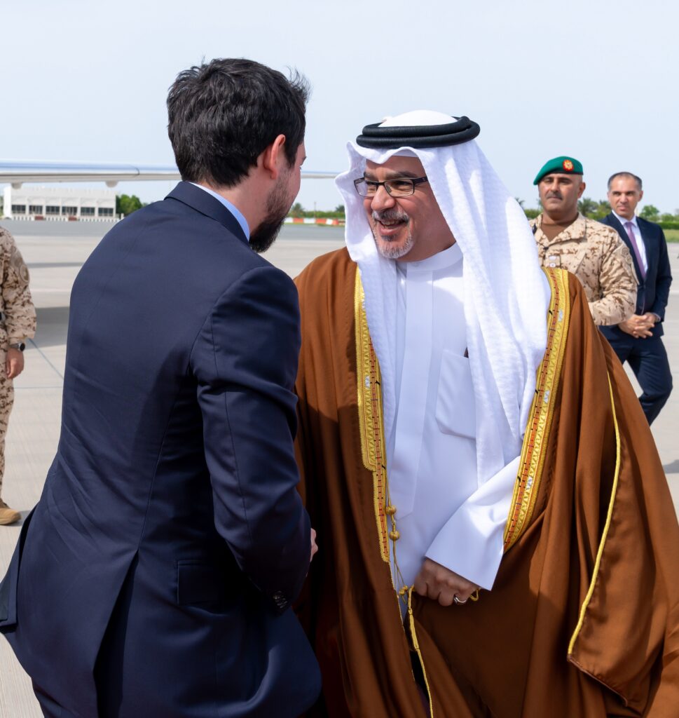 كان صاحب السمو الملكي الأمير سلمان بن حمد آل خليفة ولي العهد رئيس مجلس الوزراء، في مقدمة مستقبلي أخيه صاحب السمو الملكي الأمير الحسين بن عبدالله الثاني ولي عهد المملكة الأردنية الهاشمية الشقيقة، لدى وصوله إلى البلاد اليوم، في زيارةٍ يتم خلالها استعراض آفاق تطوير العلاقات الأخوية الراسخة بين البلدين الشقيقين، ومواصلة تعزيز كافة مساراتها نحو مستويات أكثر تقدمًا وتطورًا في مختلف المجالات، إلى جانب مناقشة تطورات الأوضاع في المنطقة، وتداعياتها على الأمن والاستقرار الإقليمي والدولي، بالإضافة إلى القضايا والموضوعات ذات الاهتمام المشترك.