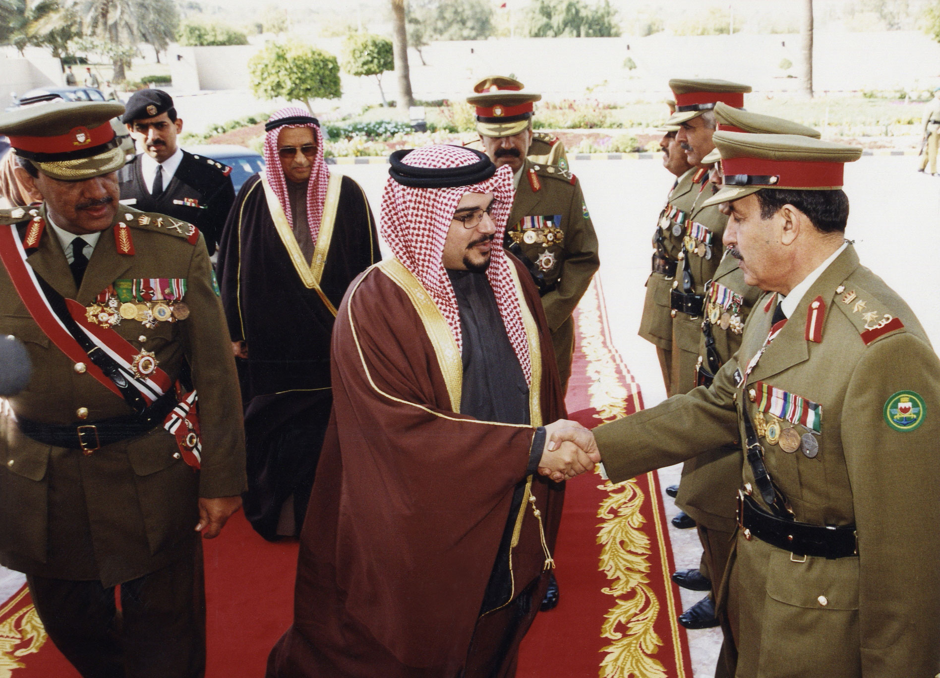 كما يشرفني أن أشيد بكل معاني التقدير والعرفان لسيدي حضرة صاحب السمو الوالد الشيخ حمد بن عيسى آل خليفة أمير البلاد المفدى القائد الأعلى، الذي حمل أمانة تشكيل هذه القوة منذ البداية، في ظروف تاريخية استلزمت ضرورة بناء قوة عسكرية وطنية، تتحمل مسؤولية الدفاع عن الوطن. وقد تميزت انطلاقة تشكيل قوة الدفاع بوضع الأنظمة والقوانين والتوجيهات السديدة التي مهدت لبناء قوة حديثة متوازنة من حيث التنظيم والتجهيز والتدريب.