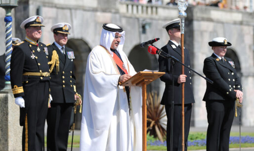 كلمة سمو ولي العهد في حفل تخريج طابور عرض القائد البحري بالكلية البحرية الملكية البريطانية